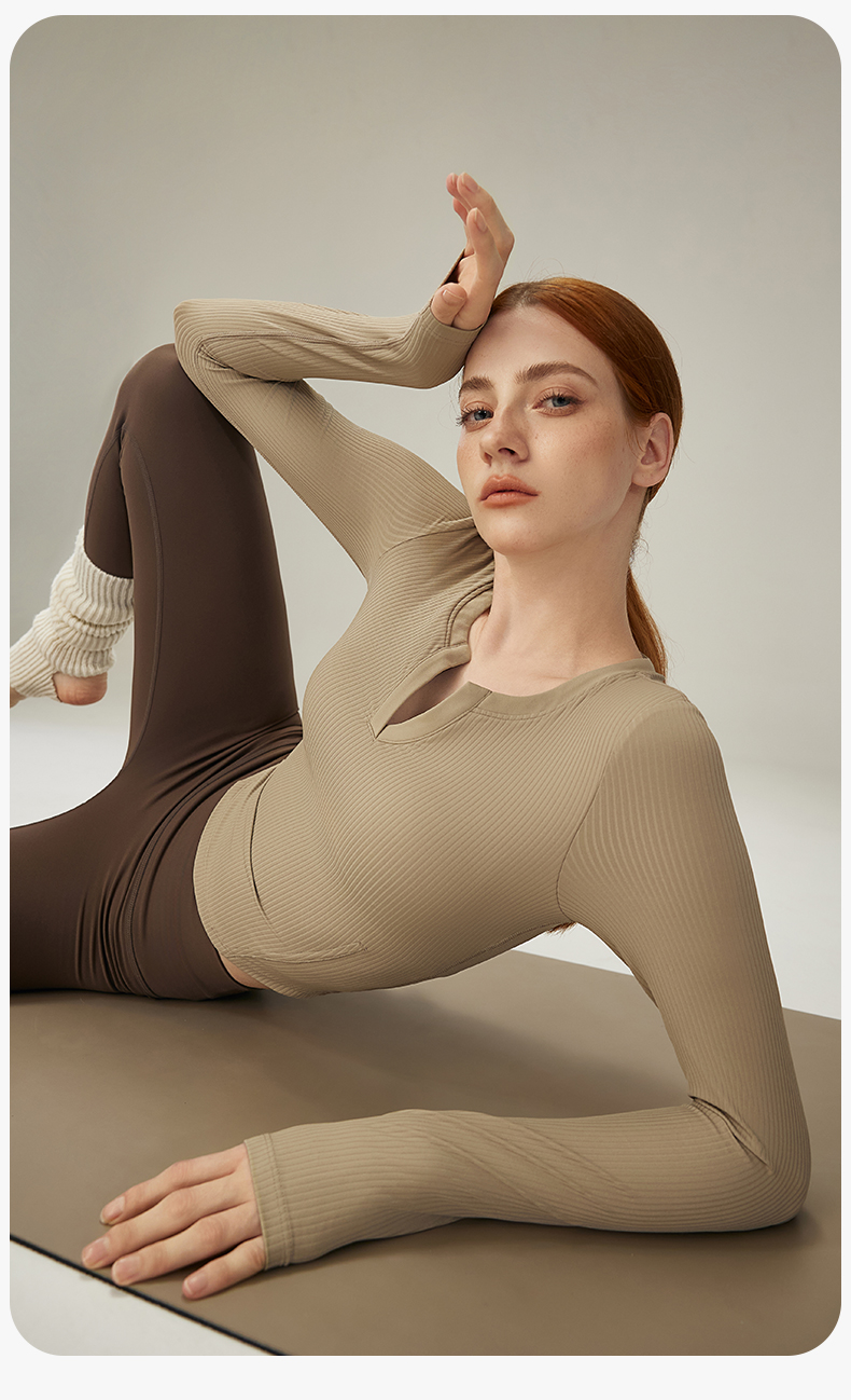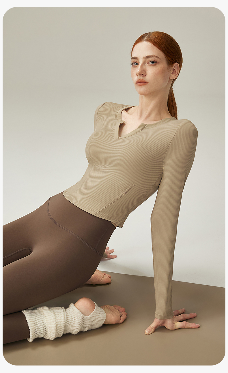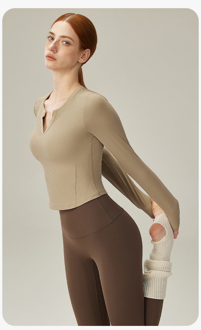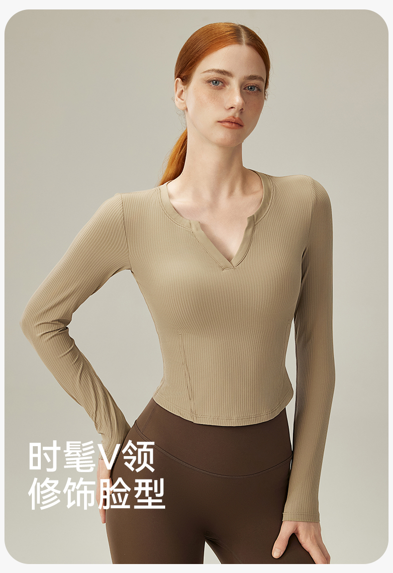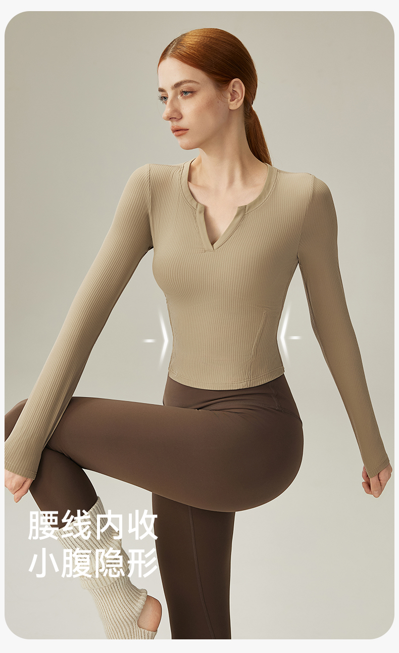 【限时秒】YOGACODE【火树银花系列】初秋长袖瑜伽服女罗纹短款修身显瘦运动t恤带胸垫DWT125585