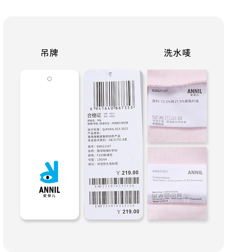 【凉感】男女童圆领SORONA短袖T恤夏季新款安奈儿童装EM521107