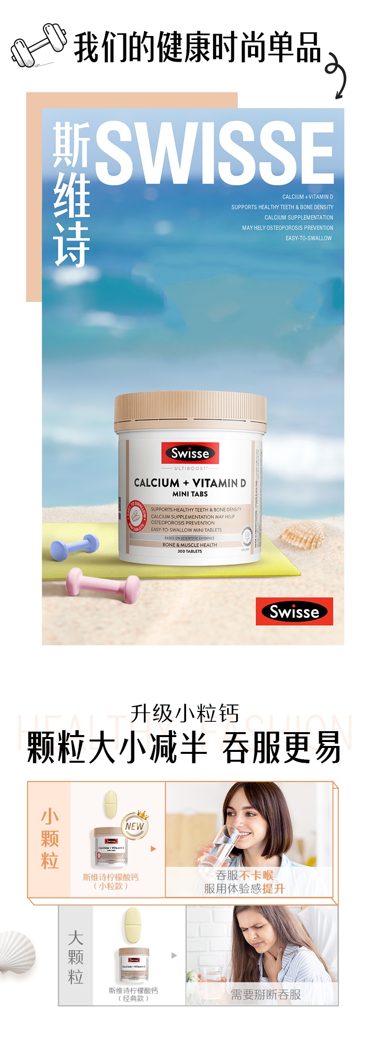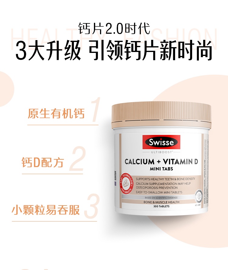 【跨境】澳洲Swisse 斯维诗迷你钙片钙+维生素D 300片(新旧版本随机)成人孕 中老年柠檬酸钙
