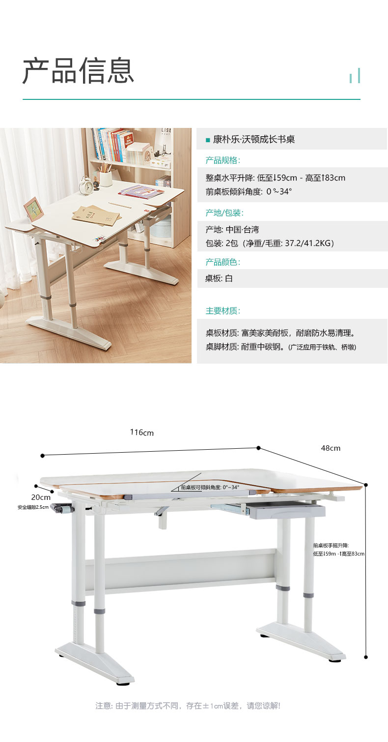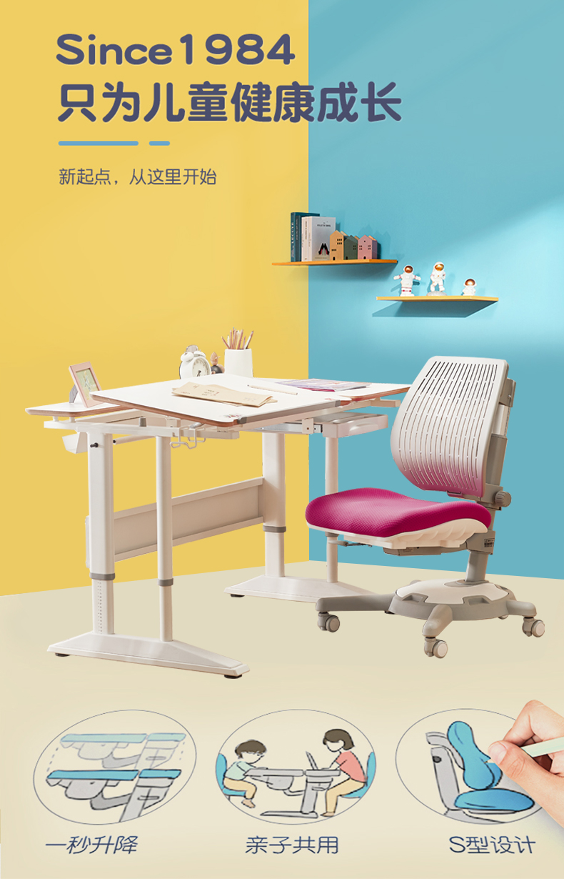 3岁+康朴乐学习桌椅 沃顿桌+柏拉图椅子/牛顿椅子 优质原材料 安全防夹手