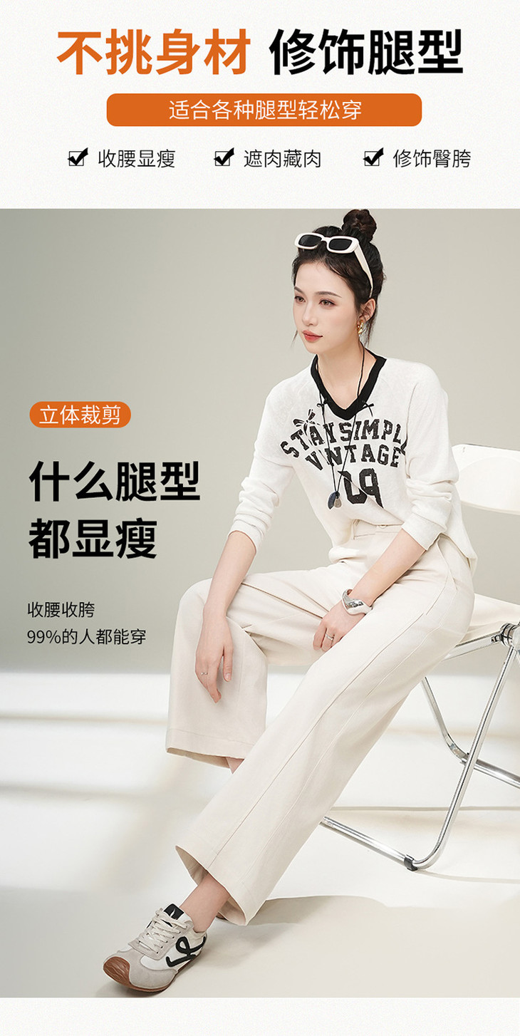 宽松阔腿裤百搭休闲裤,气质优雅高腰直筒裤MYX-XBMY-9601-Y