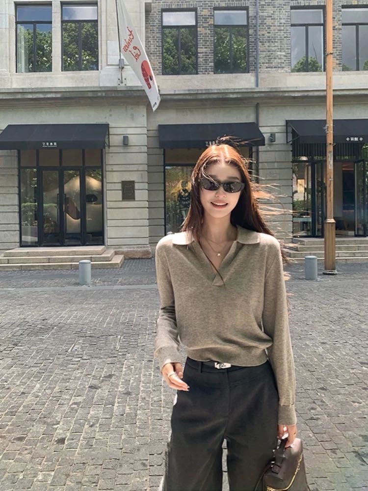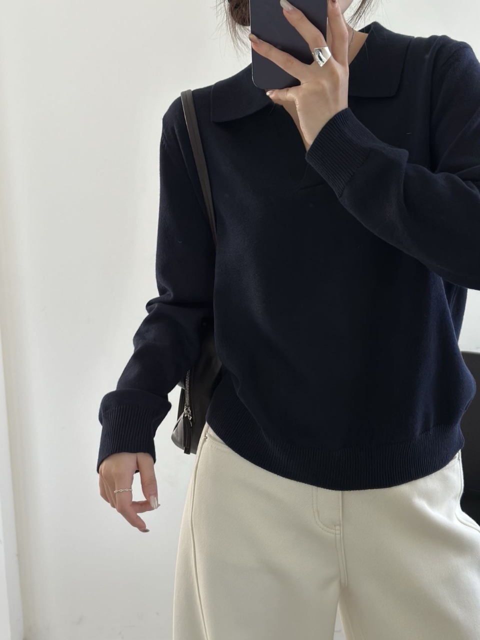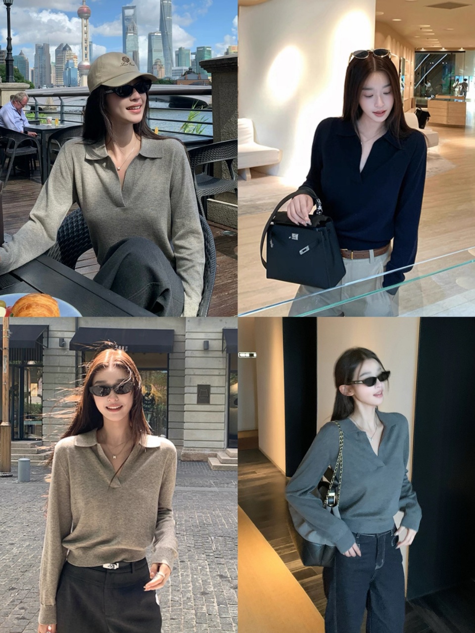 爆款3-5天发货!高智老钱风冬季加厚羊毛毛显瘦Polo领长袖针织衫JS3699124