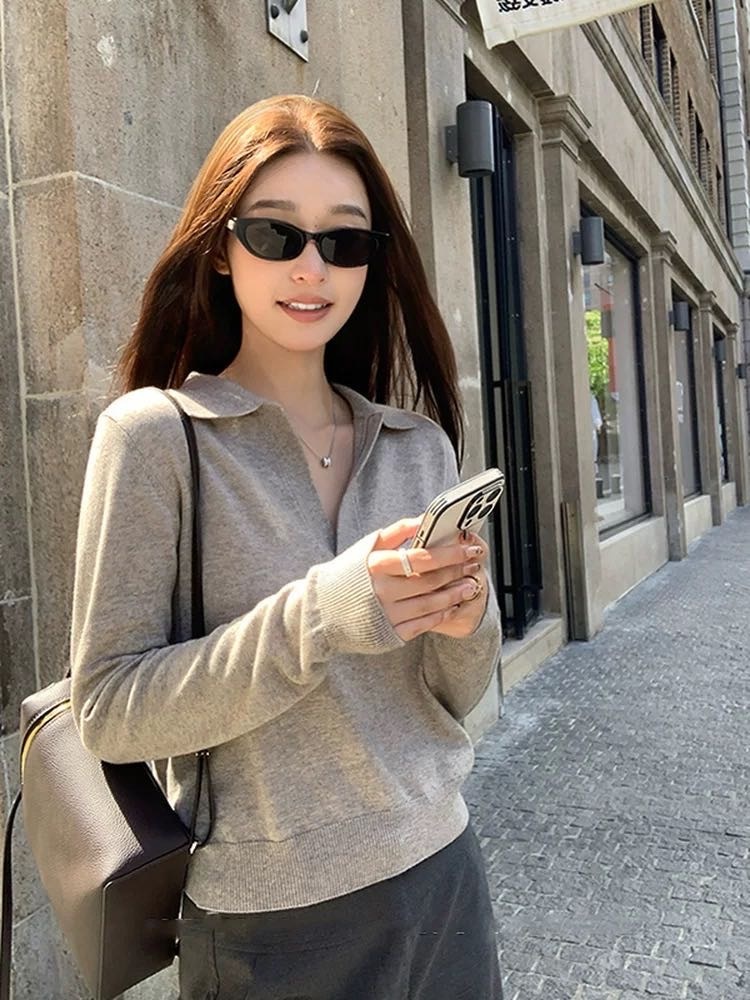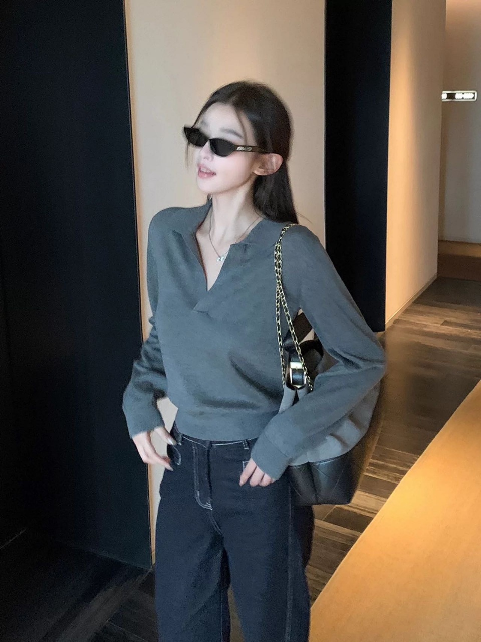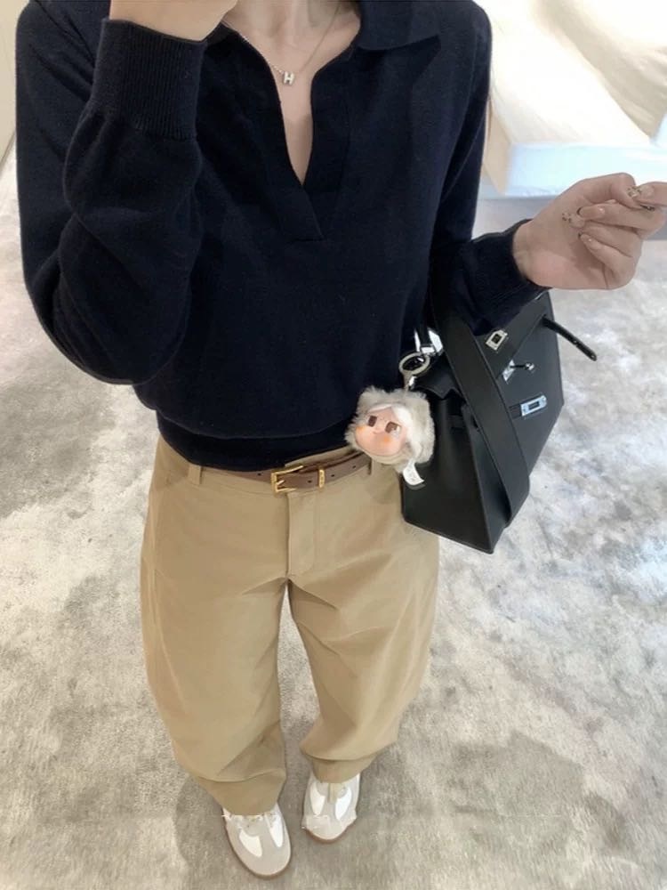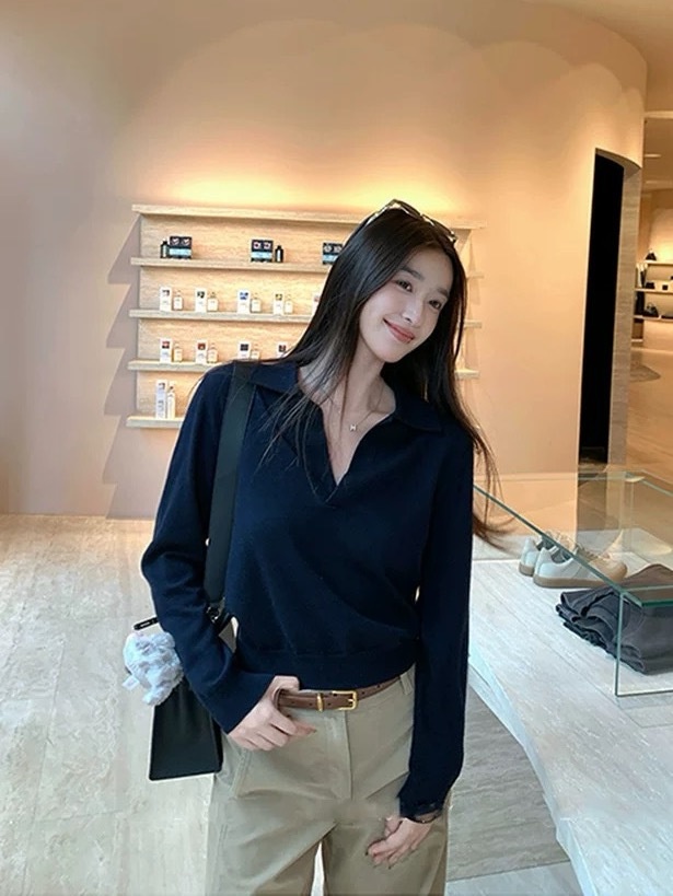 爆款3-5天发货!高智老钱风冬季加厚羊毛毛显瘦Polo领长袖针织衫JS3699124