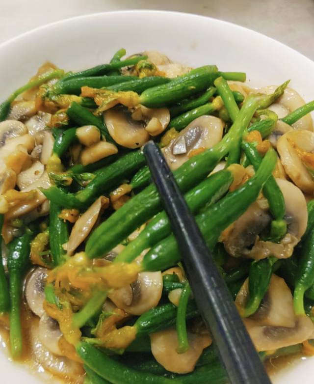 时令小炒|春的味道《黄瓜花炒口蘑》,绝对的鲜上加鲜