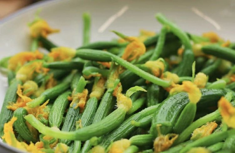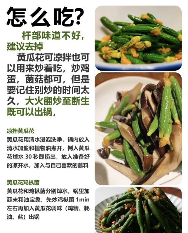 ✅ 清炒黄瓜花:热油爆香蒜末,下黄瓜花翻炒1分钟,撒盐出锅,脆嫩鲜甜