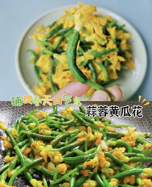 春日时令家常小炒💚脆嫩脆嫩的黄瓜花第一次吃黄瓜花,口感很惊艳啊,脆嫩脆嫩的,好吃~颜色也十分春天!