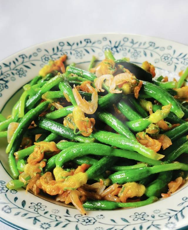 食材:黄瓜花,蒜末,虾米做法:1.黄瓜花放入大盆里,清水加少许盐浸泡一会儿,捞出冲洗。2.热油炒香蒜末虾米,加入黄瓜花翻炒约2分钟。3.少许生抽,盐,鸡粉调味即可。