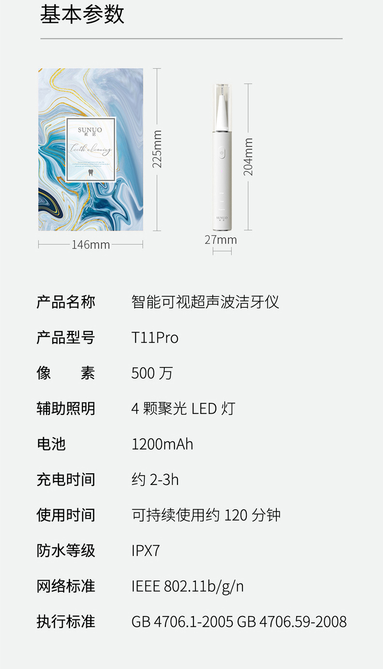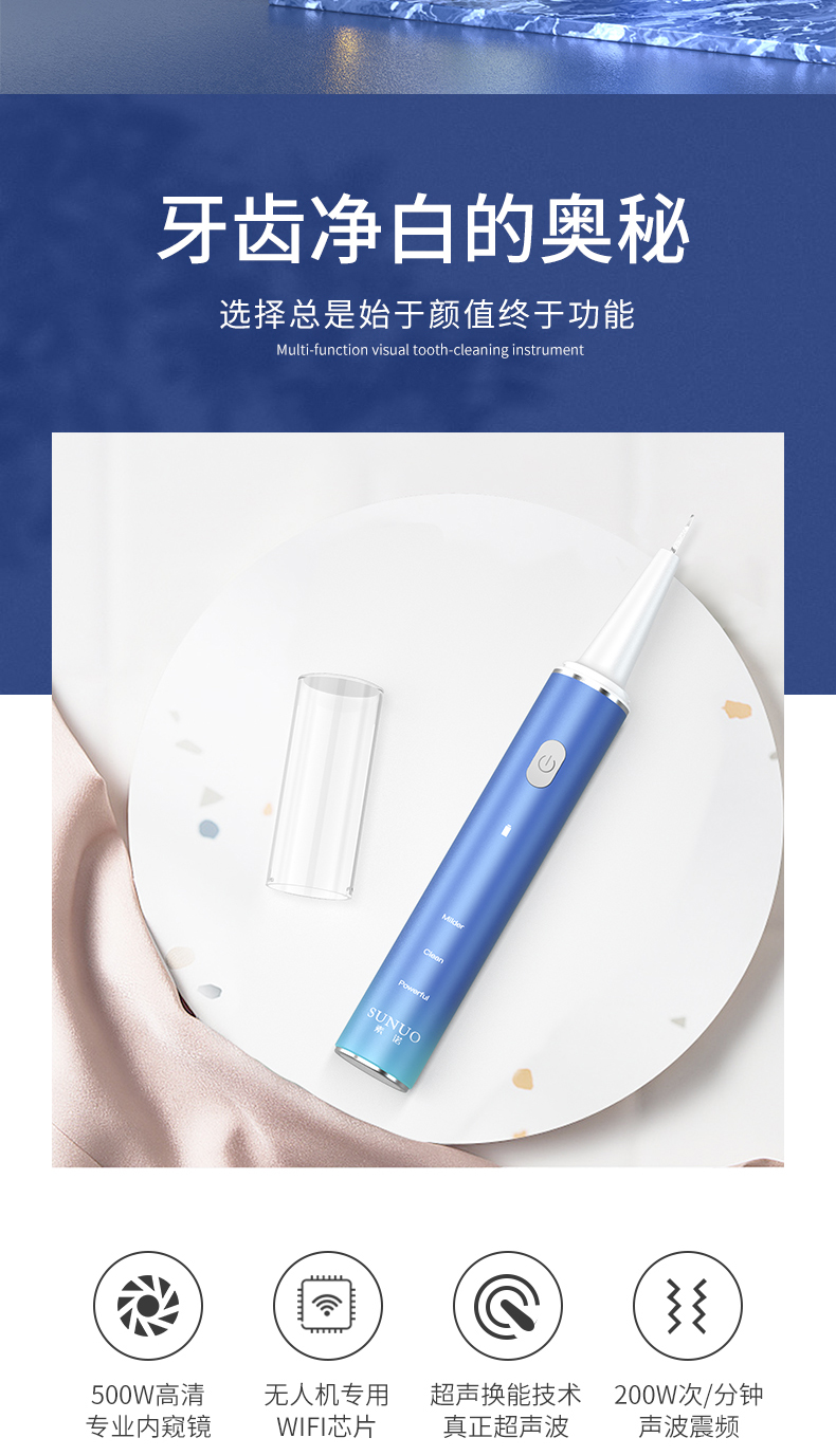 素诺可视化500w像素超声波洁牙仪家用去牙结石去除器洗牙齿牙石神器