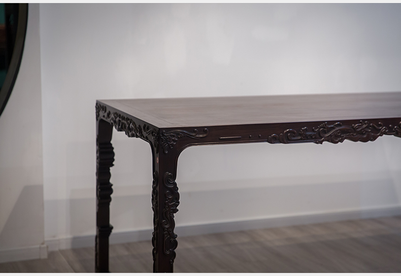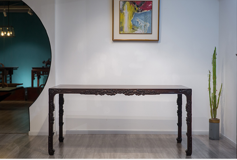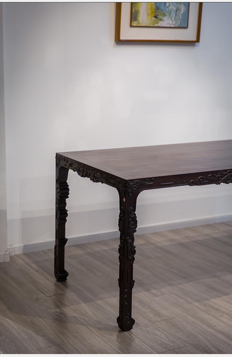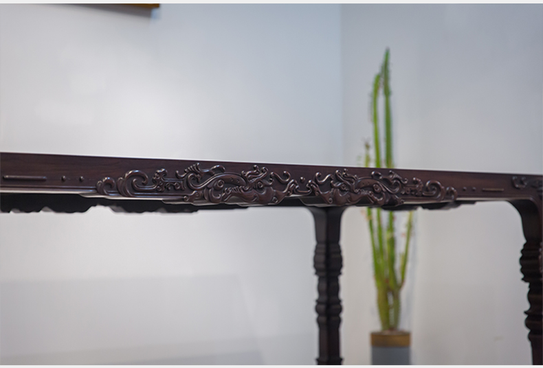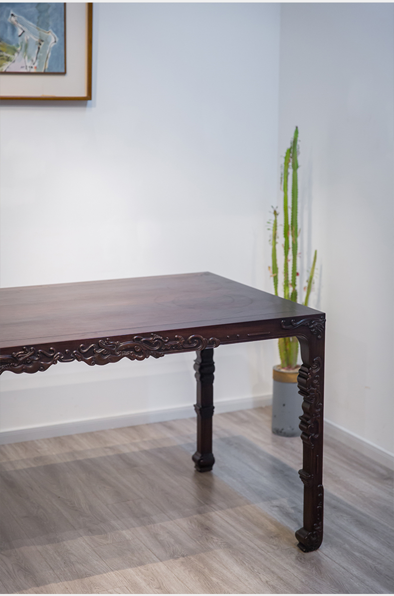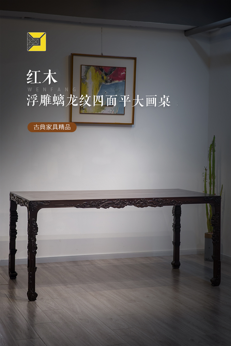 红木浮雕螭龙纹四面平大画桌
