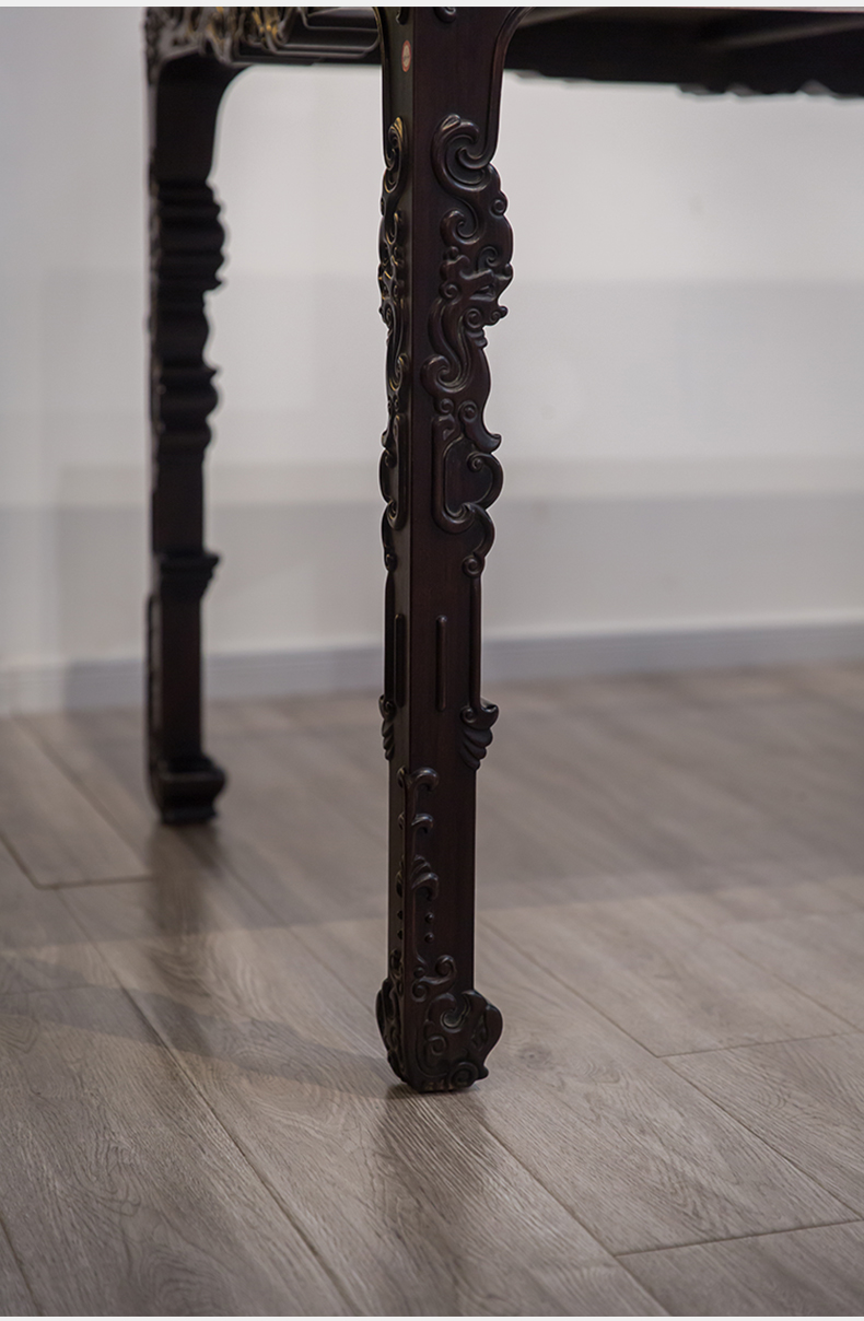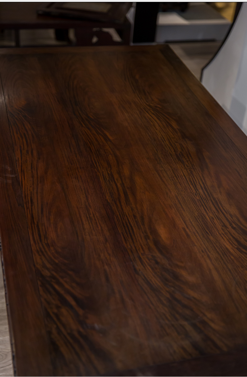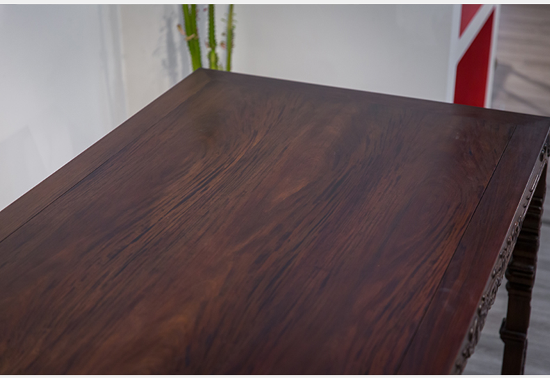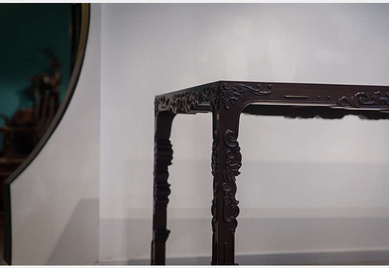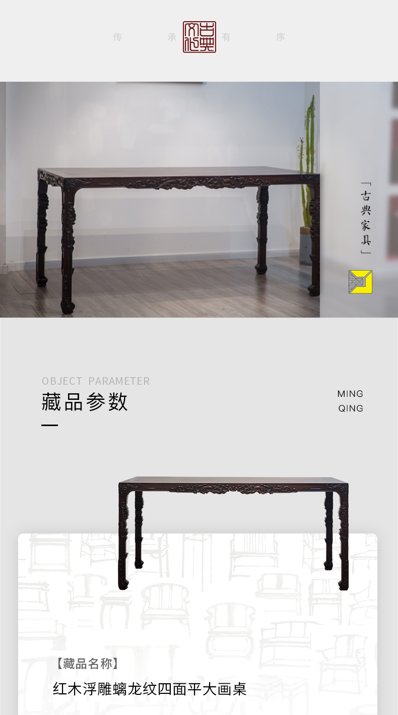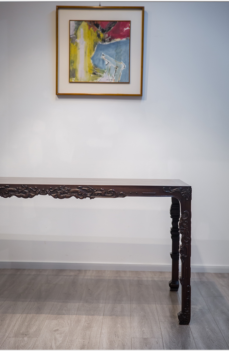 红木浮雕螭龙纹四面平大画桌