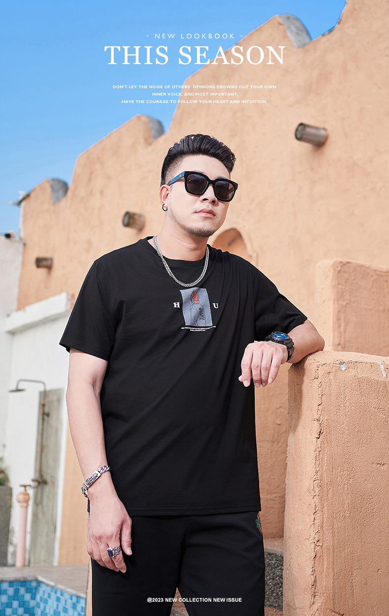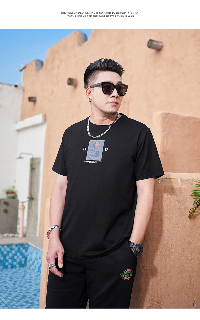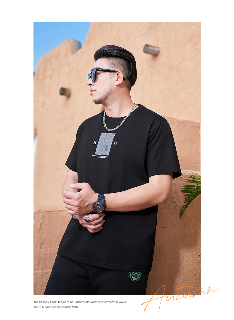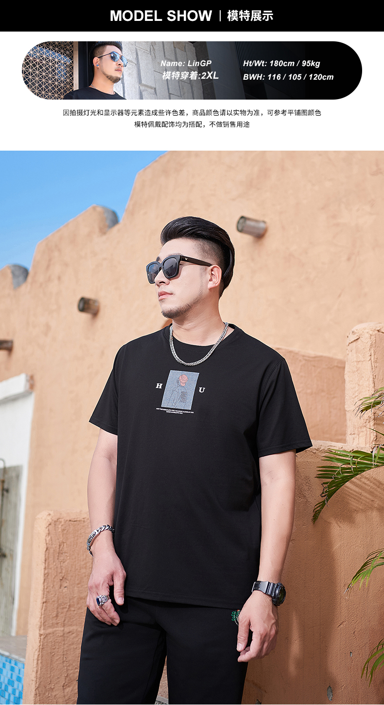 【新款DMH】大码男装印花短袖T恤加肥加大休闲潮款肥佬男上衣夏季半袖