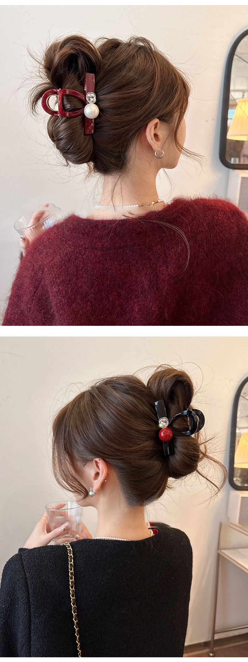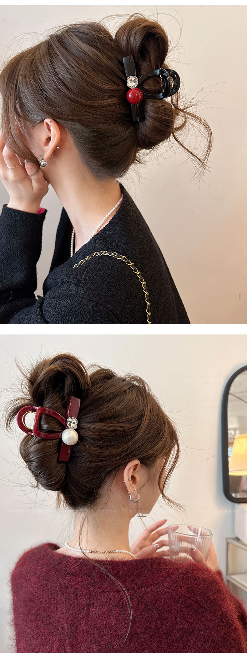 丁摩 【两个装】安可拉红珍珠发夹女秋冬复古高级感抓夹后脑勺鲨鱼夹头饰5ZF-10201