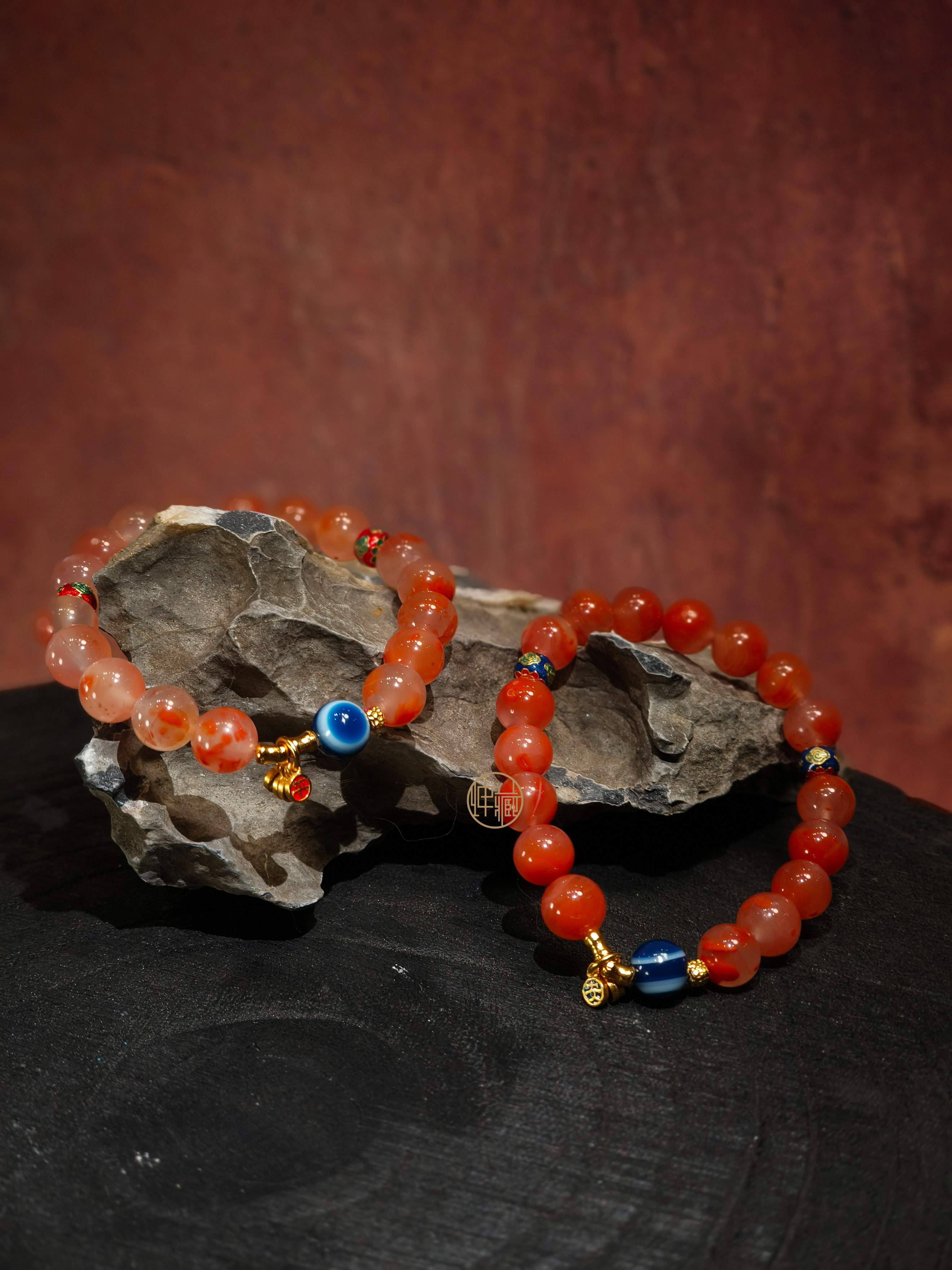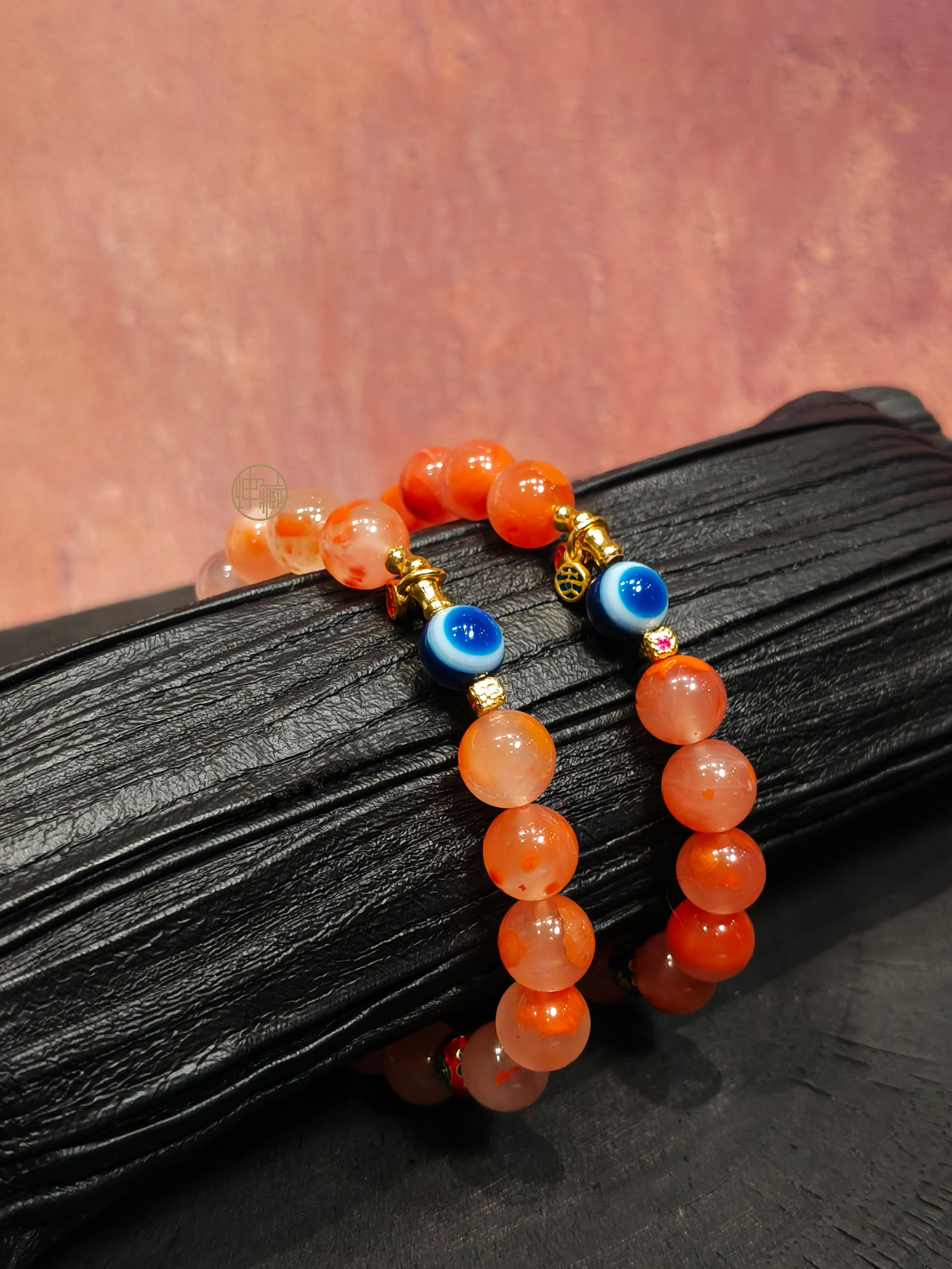 品名:梁山南红配巴西琉璃光药师天眼天珠手链