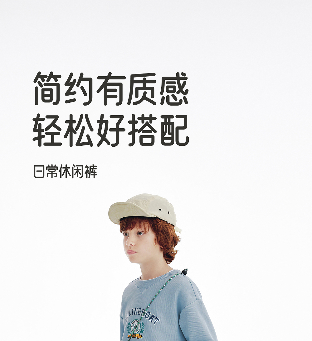 英氏儿童裤子春秋新款男童时尚直筒裤百搭纯色中大童外出休闲卫裤