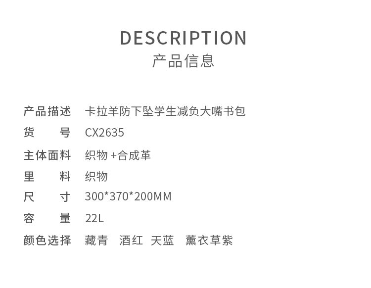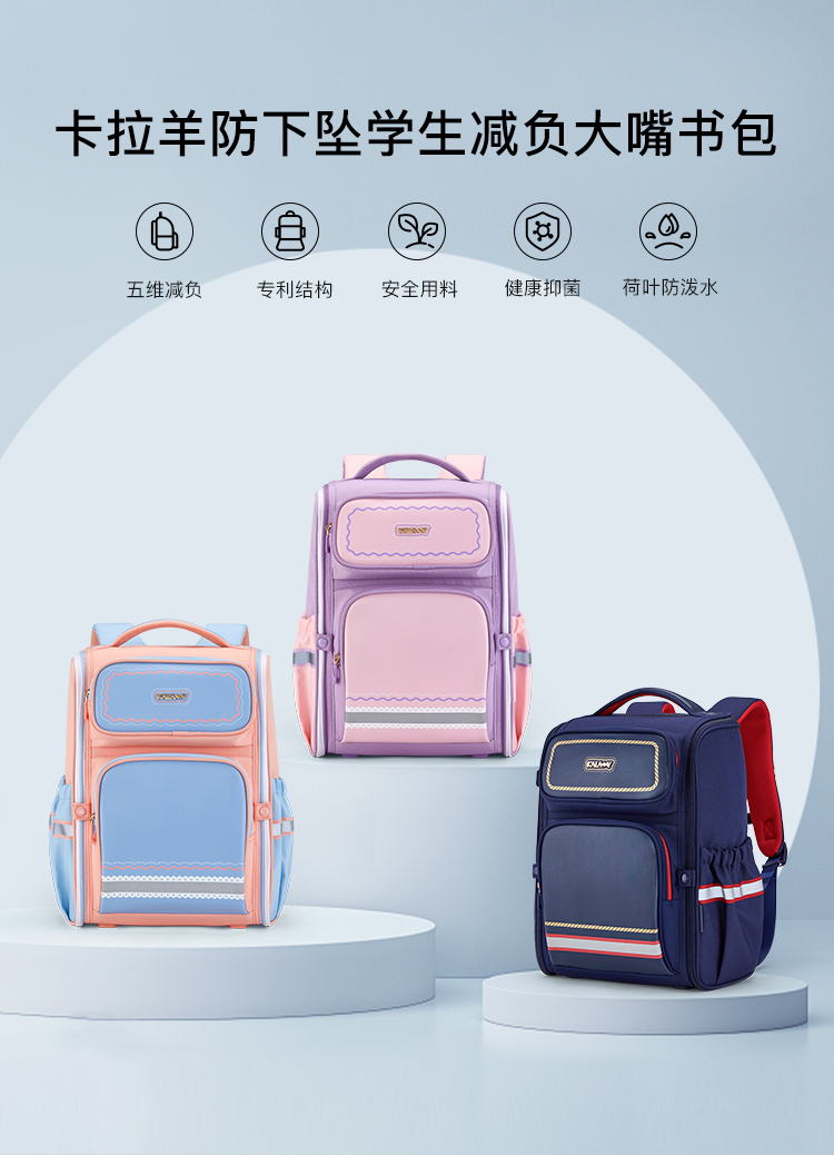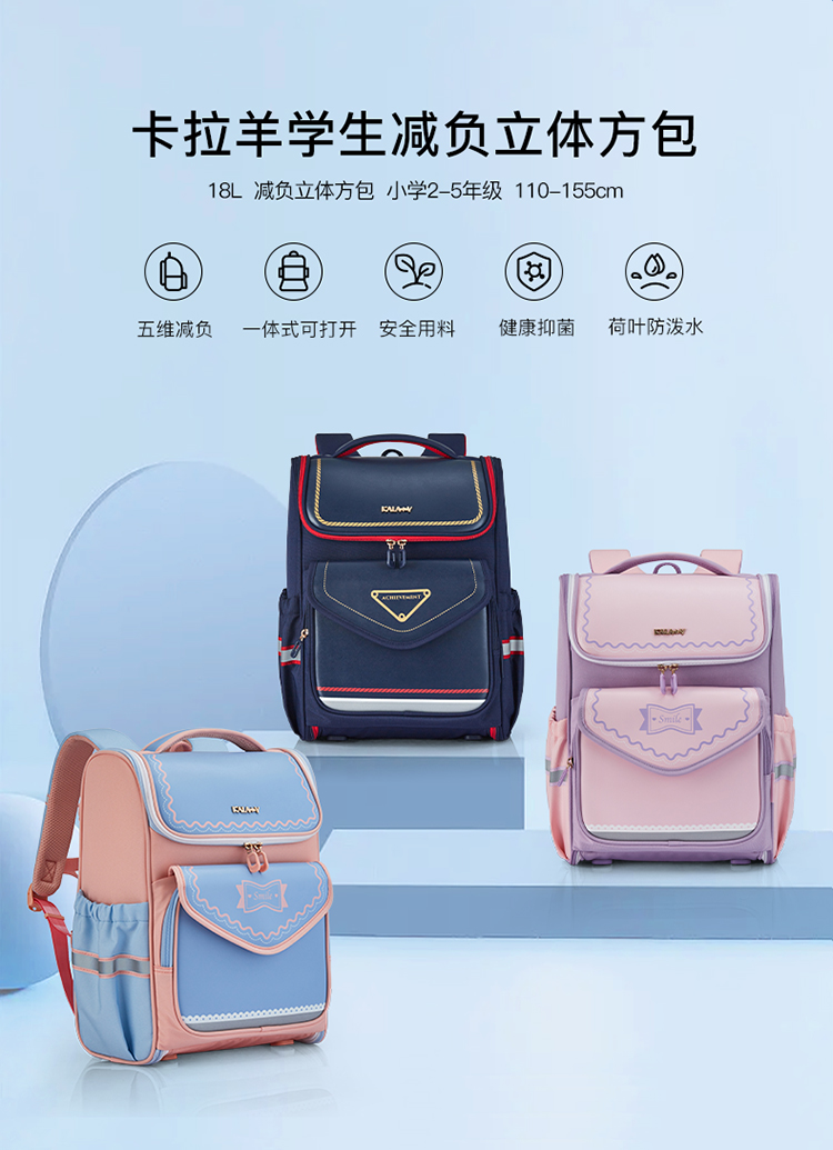卡拉羊1-6年级18L/22L五维减负防下坠大嘴书包魔法乐章CX2587+CX2635