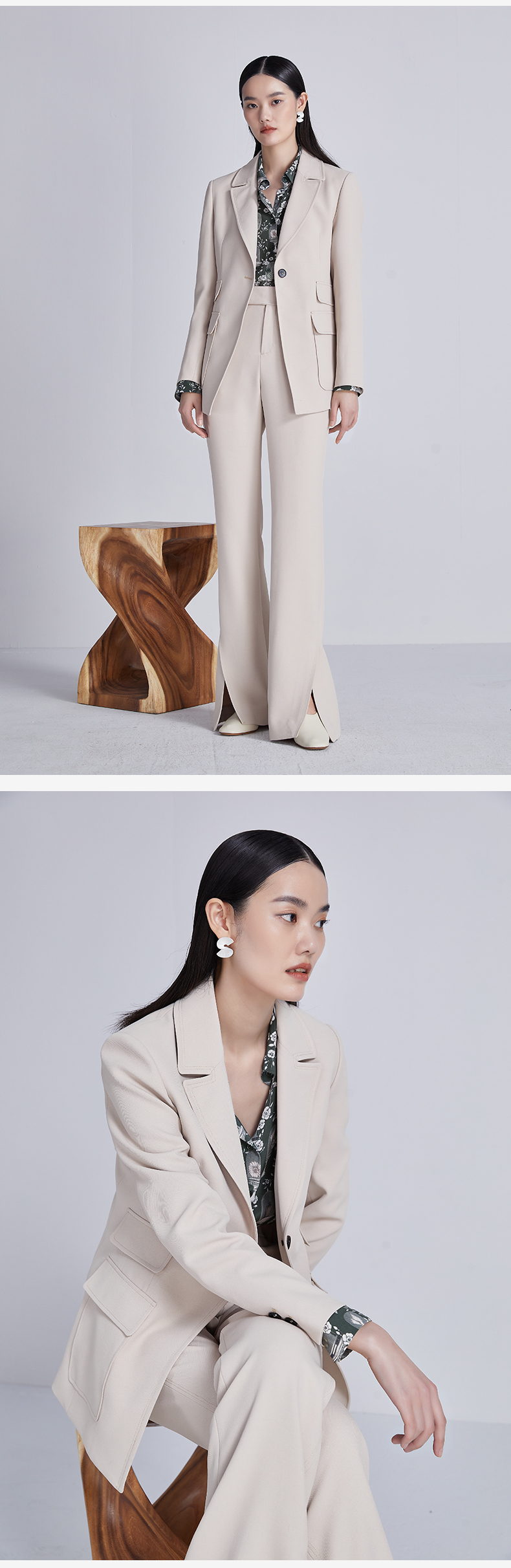 Even Vintage | 羊毛羊绒混纺 软糯温柔v领连帽套头针织毛衫