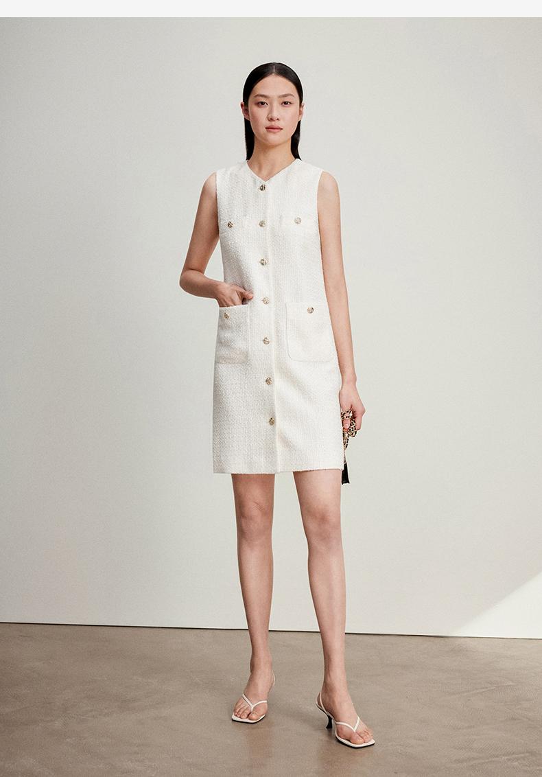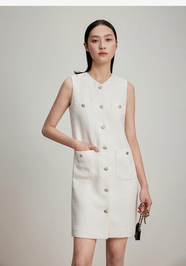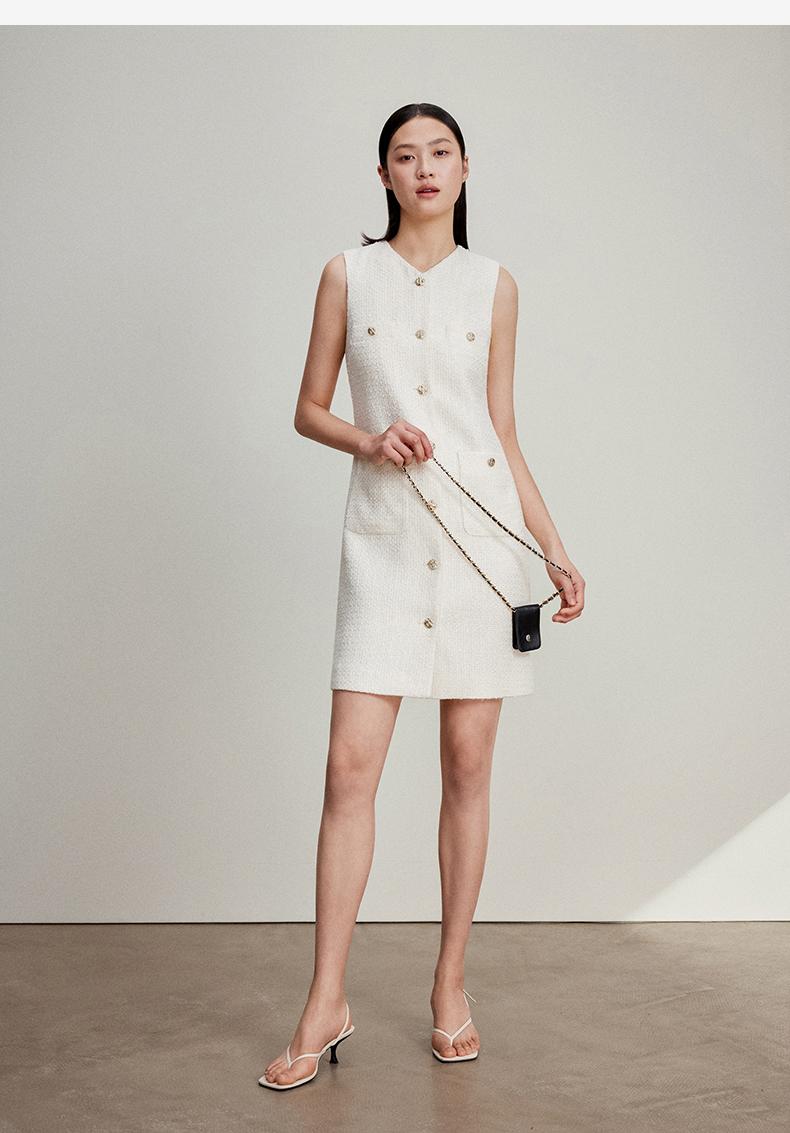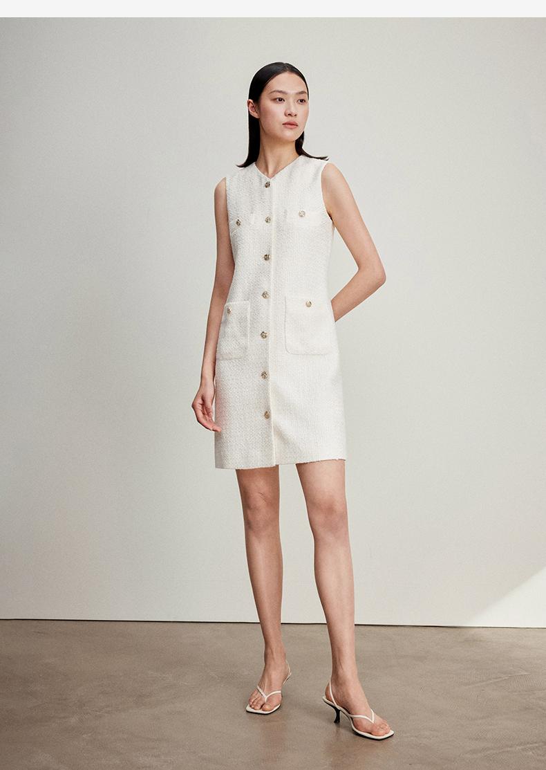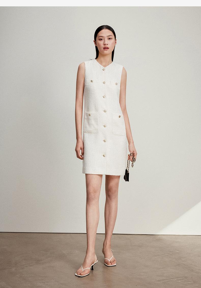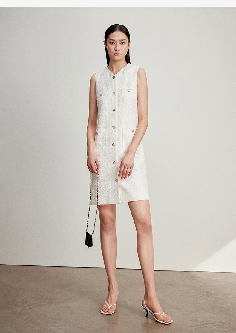 西嘉C+IMPRESS/西嘉无袖气质小香风连衣裙女春夏中长款花呢千金风裙子LYQ2401087