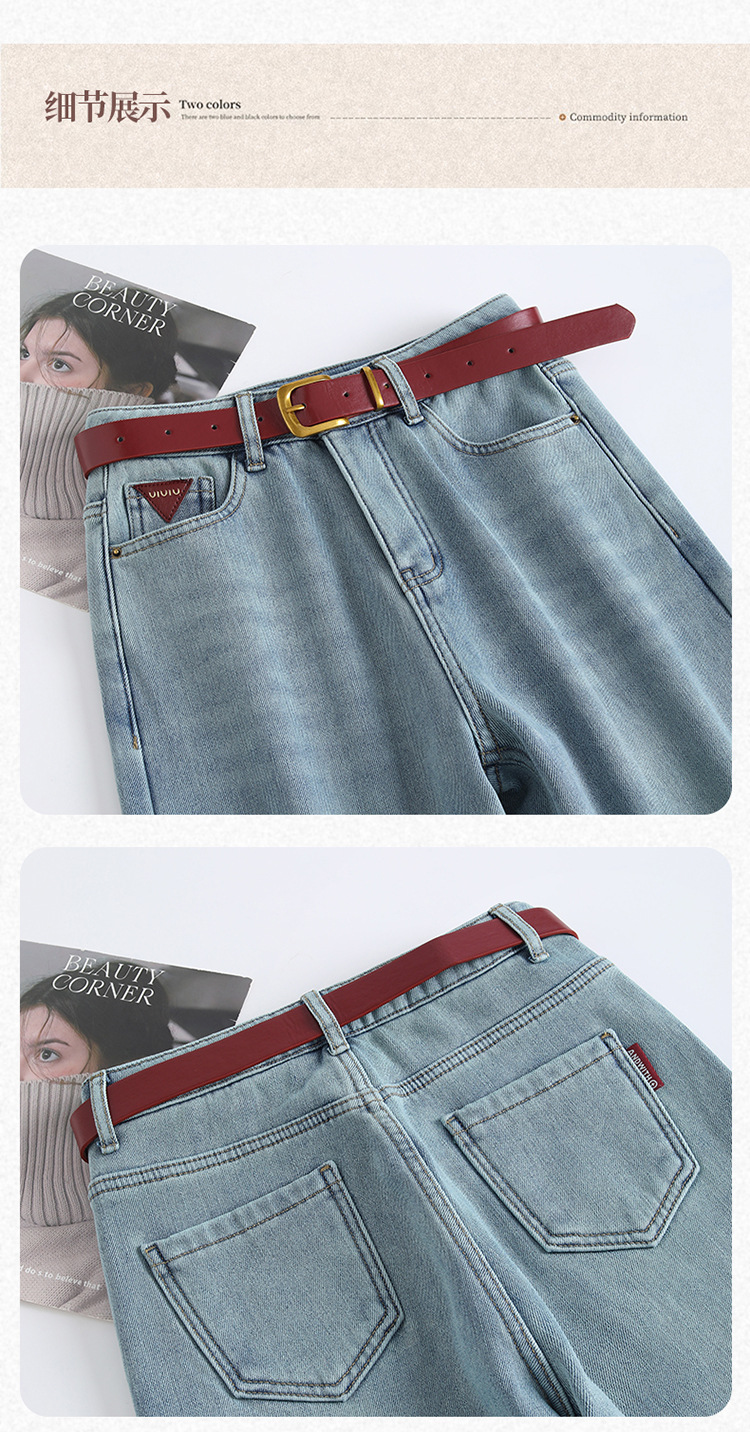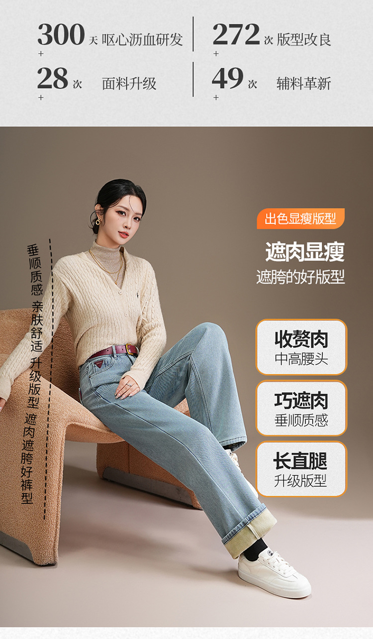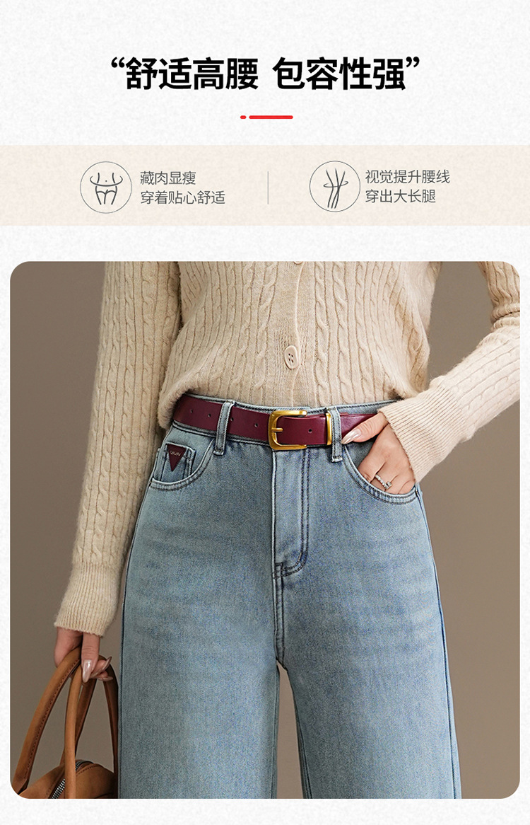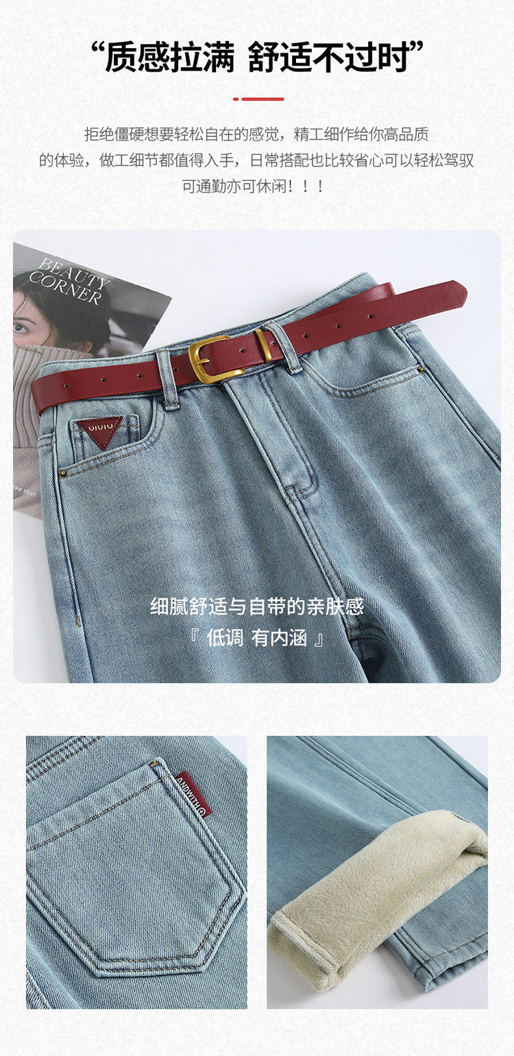 「自」全新升级【铂金会员183/天猫249/差价66】(10406)洛诗琳通勤百搭加绒牛仔裤2025秋冬新款高腰直筒显瘦长裤