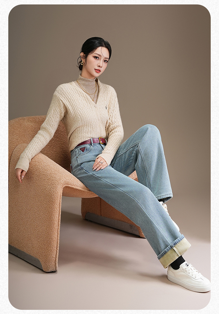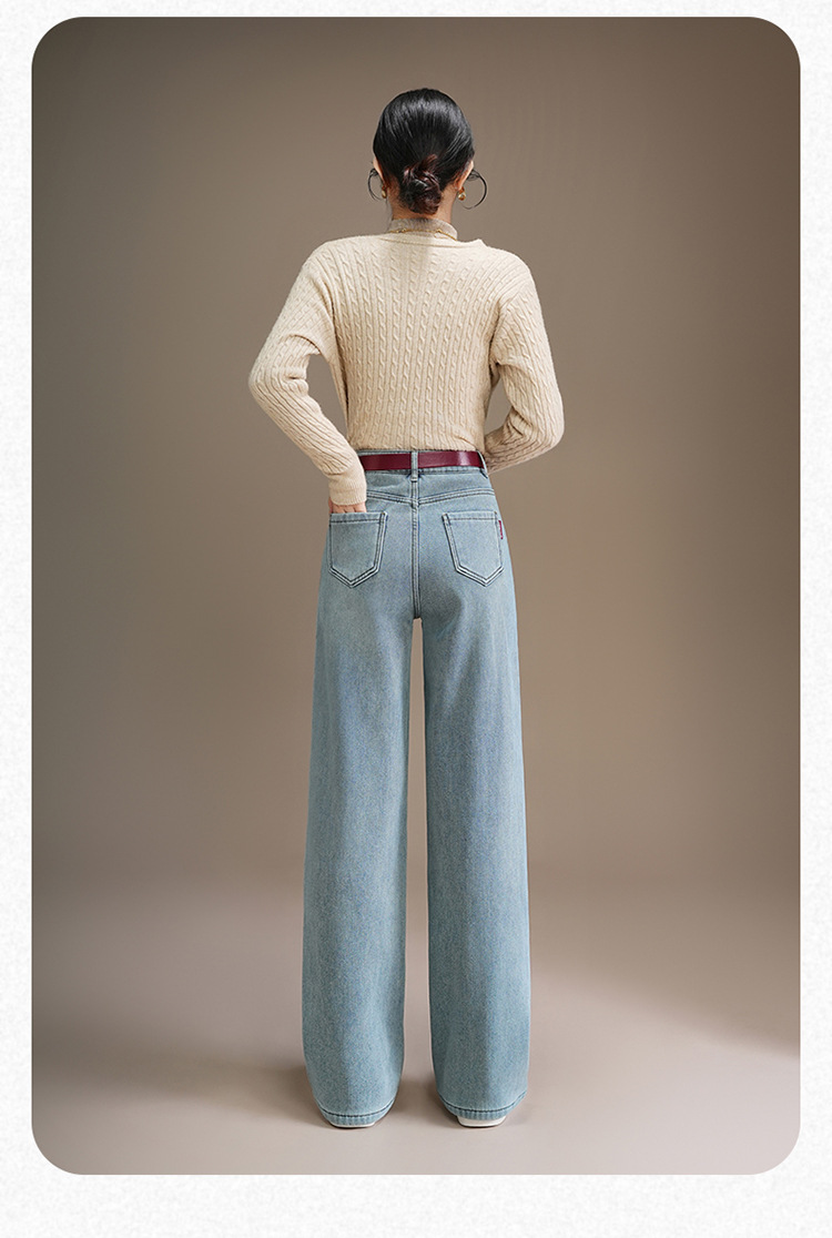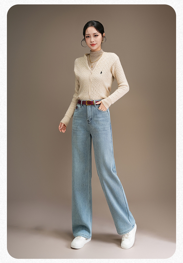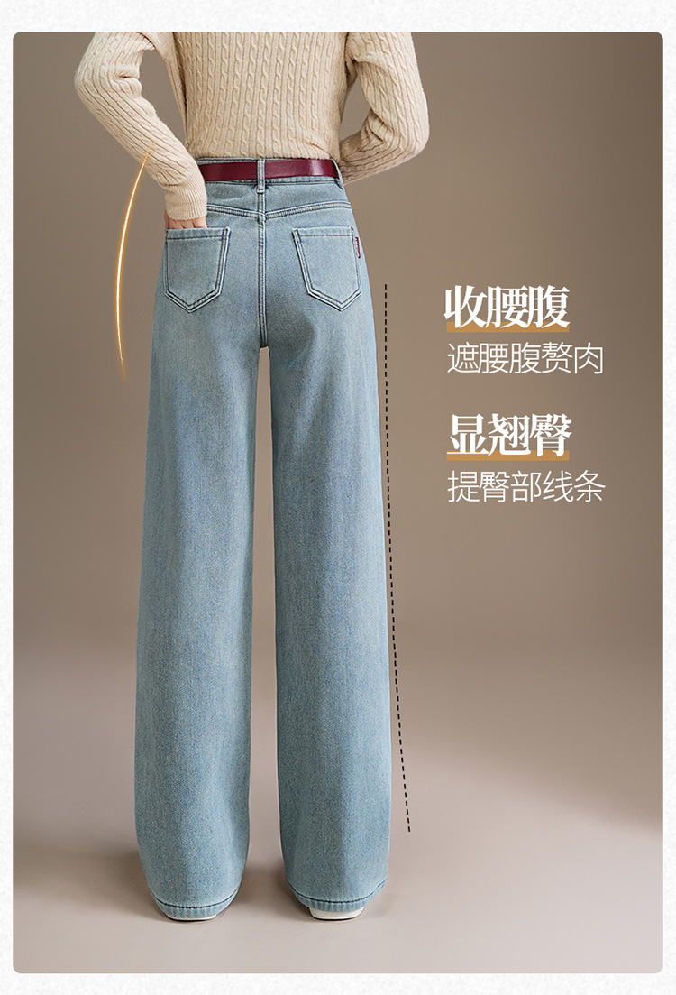 「自」全新升级【铂金会员183/天猫249/差价66】(10406)洛诗琳通勤百搭加绒牛仔裤2025秋冬新款高腰直筒显瘦长裤