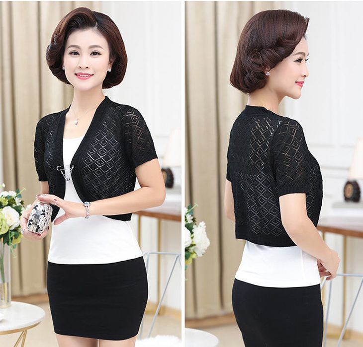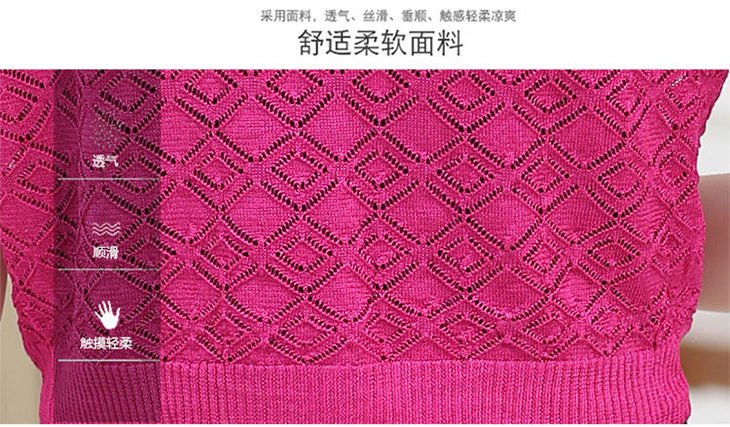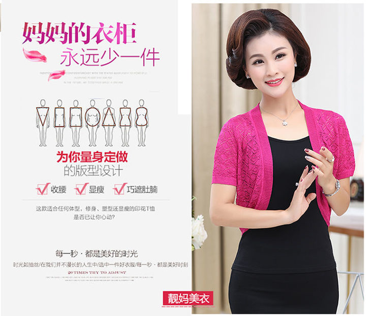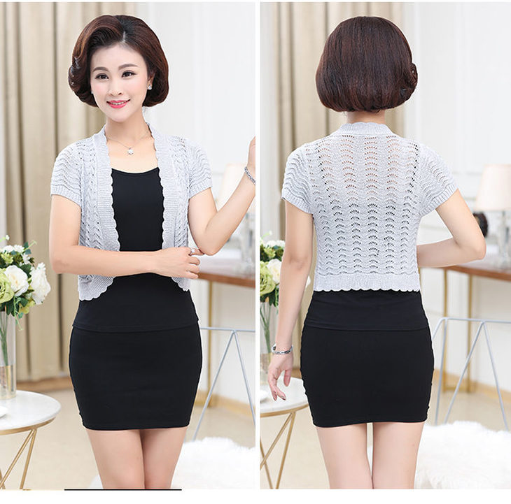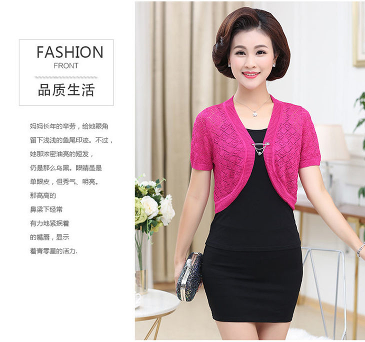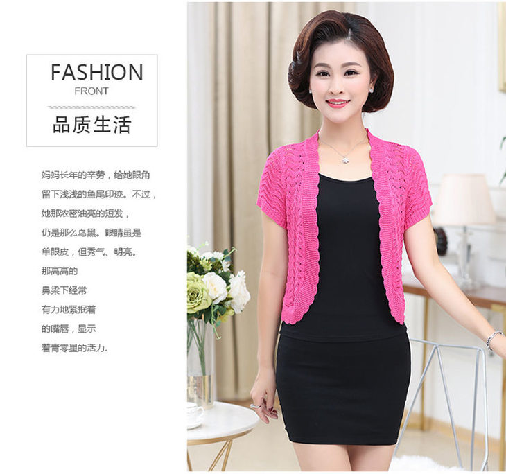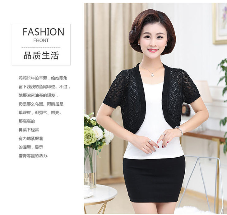 PDD-妈妈冰丝针织披肩外套 半袖镂空上衣坎肩