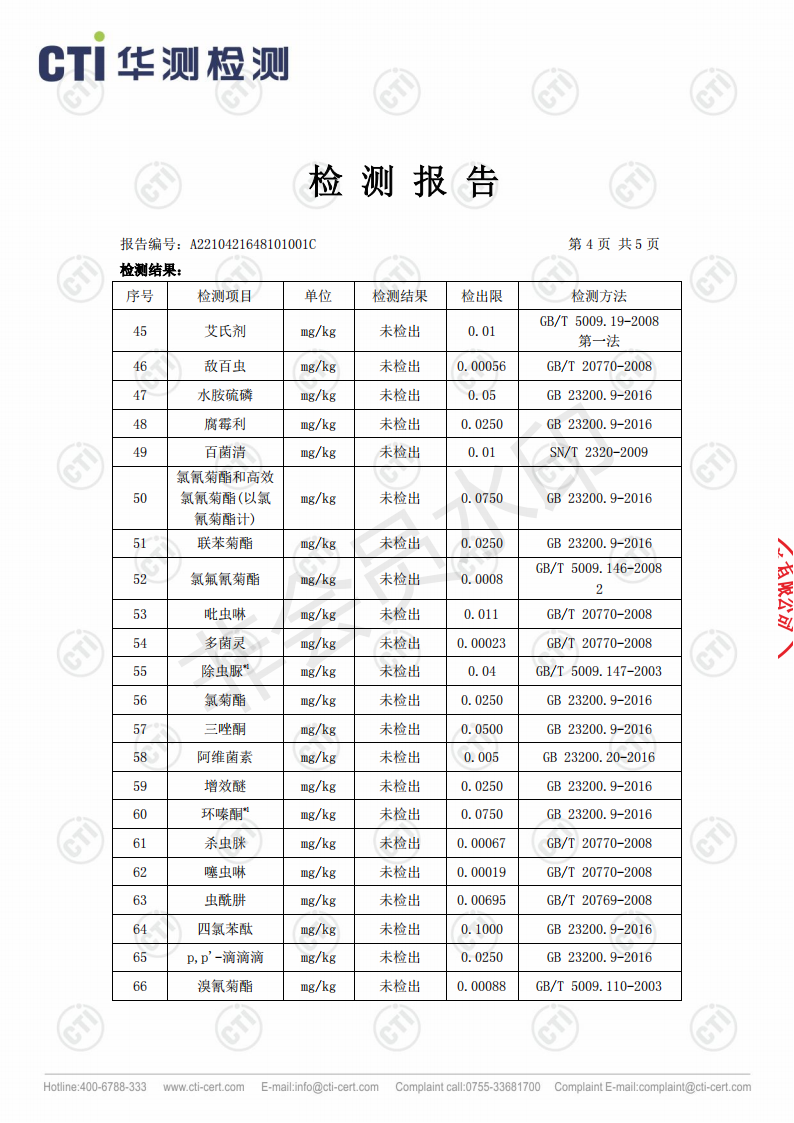 每年配送过程中我们会对大米进行抽样检测监控 ,目前为止检测全部为无农残检出。