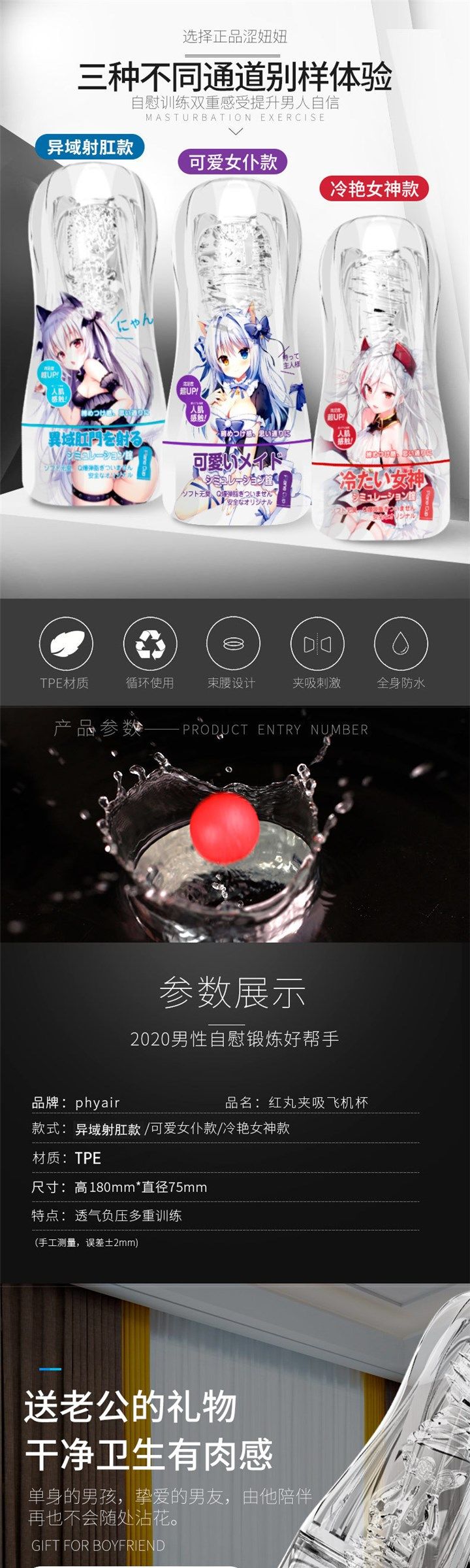 【年末亏本清仓 吮裹含吸】涩妞妞phyair男性自慰器飞机杯 冷艳女神