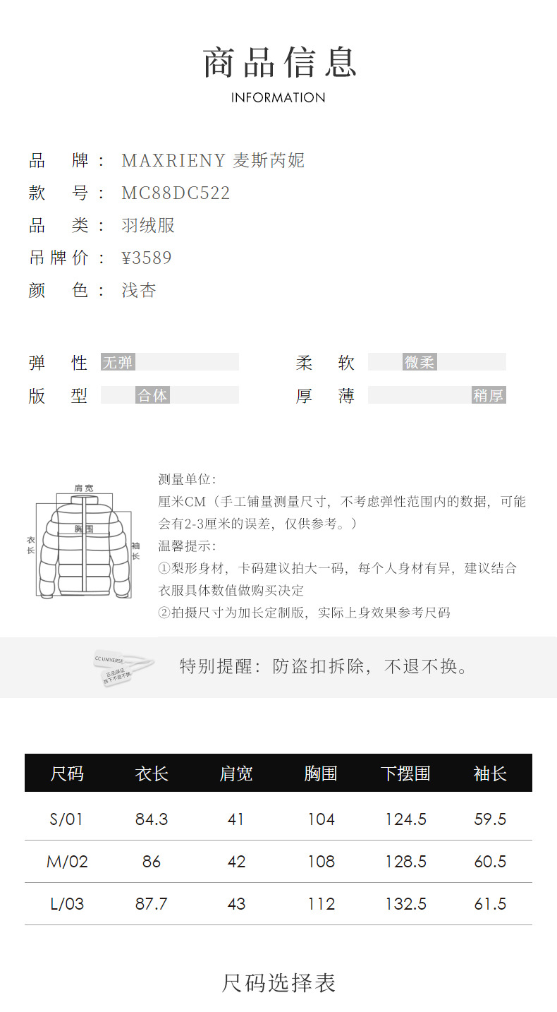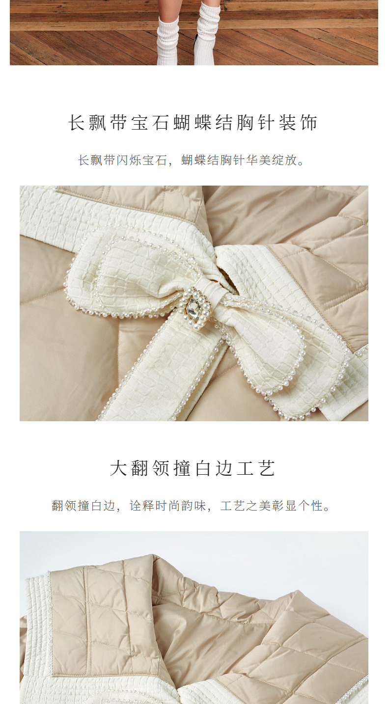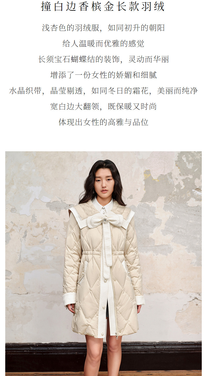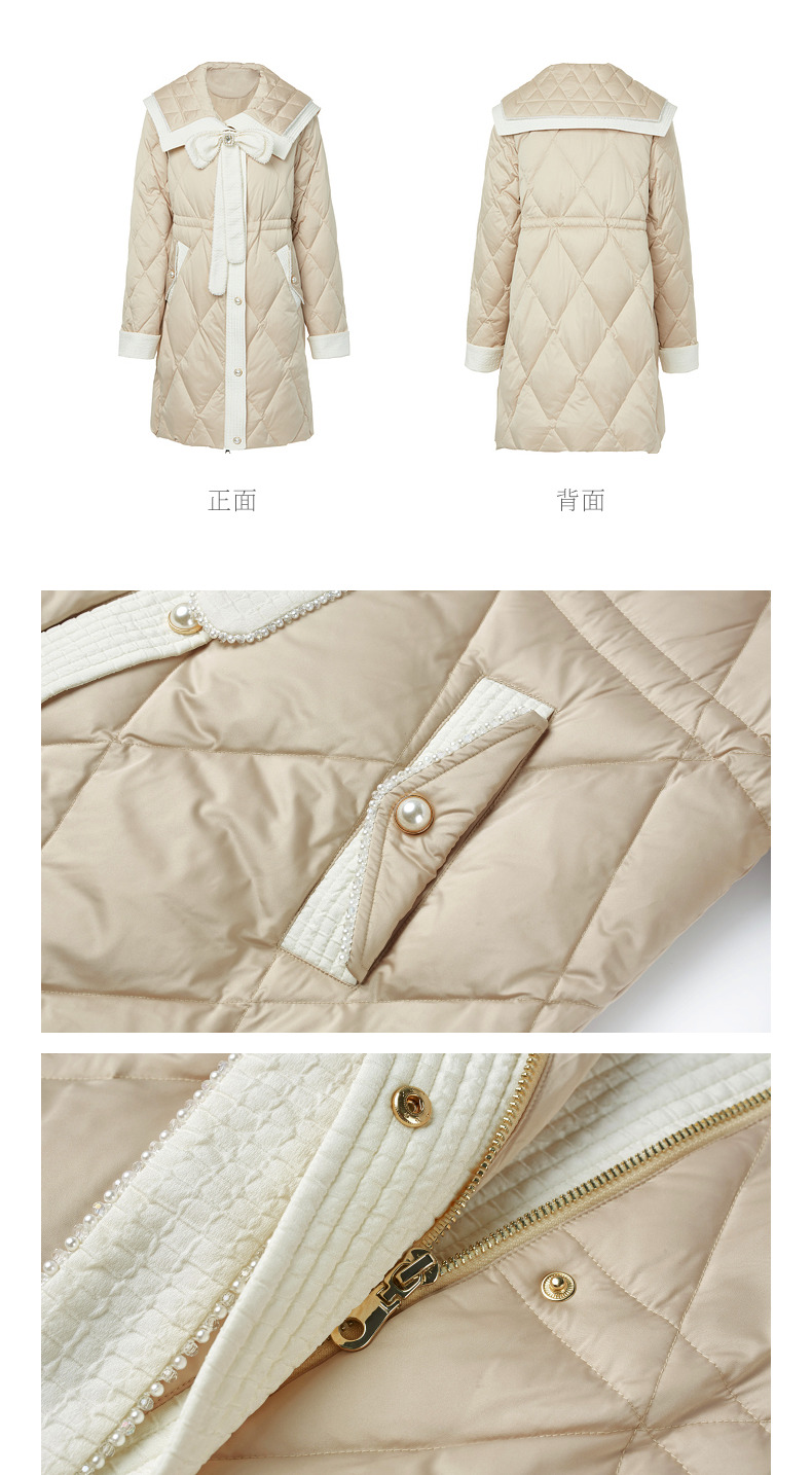 MAXRIENY*复古小香撞白边香槟金长款羽绒服外套(货号:MC88DC522)
