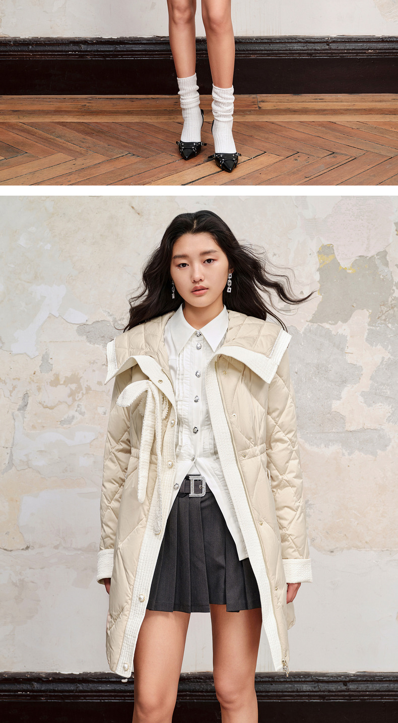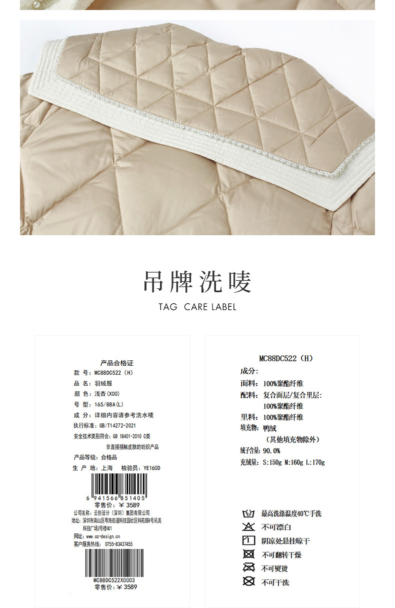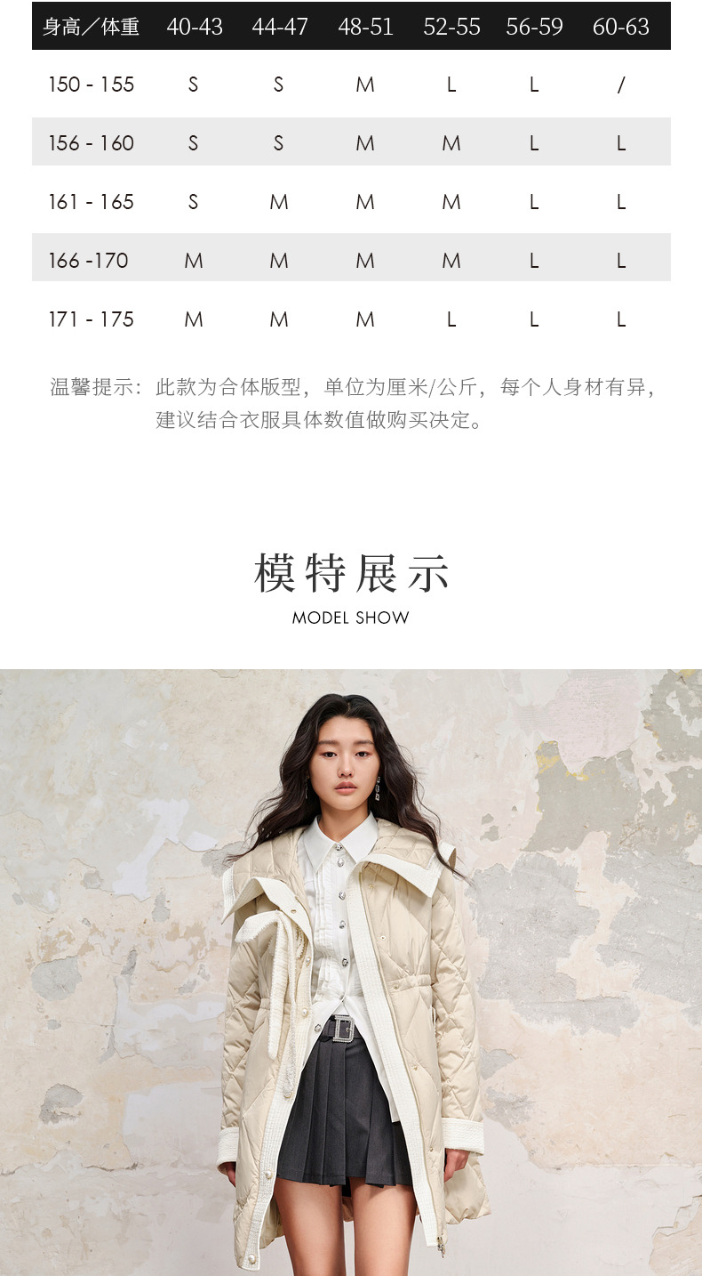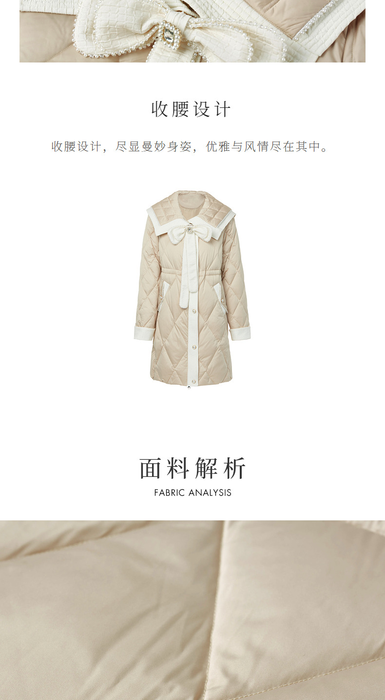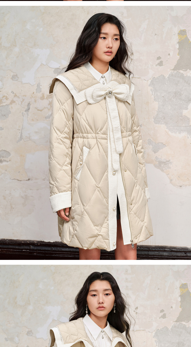 MAXRIENY*复古小香撞白边香槟金长款羽绒服外套(货号:MC88DC522)