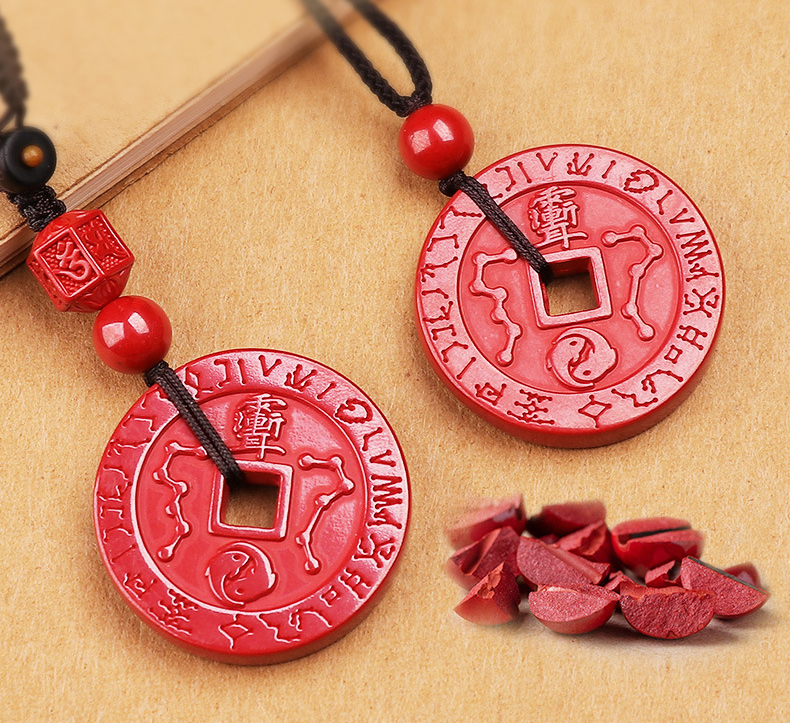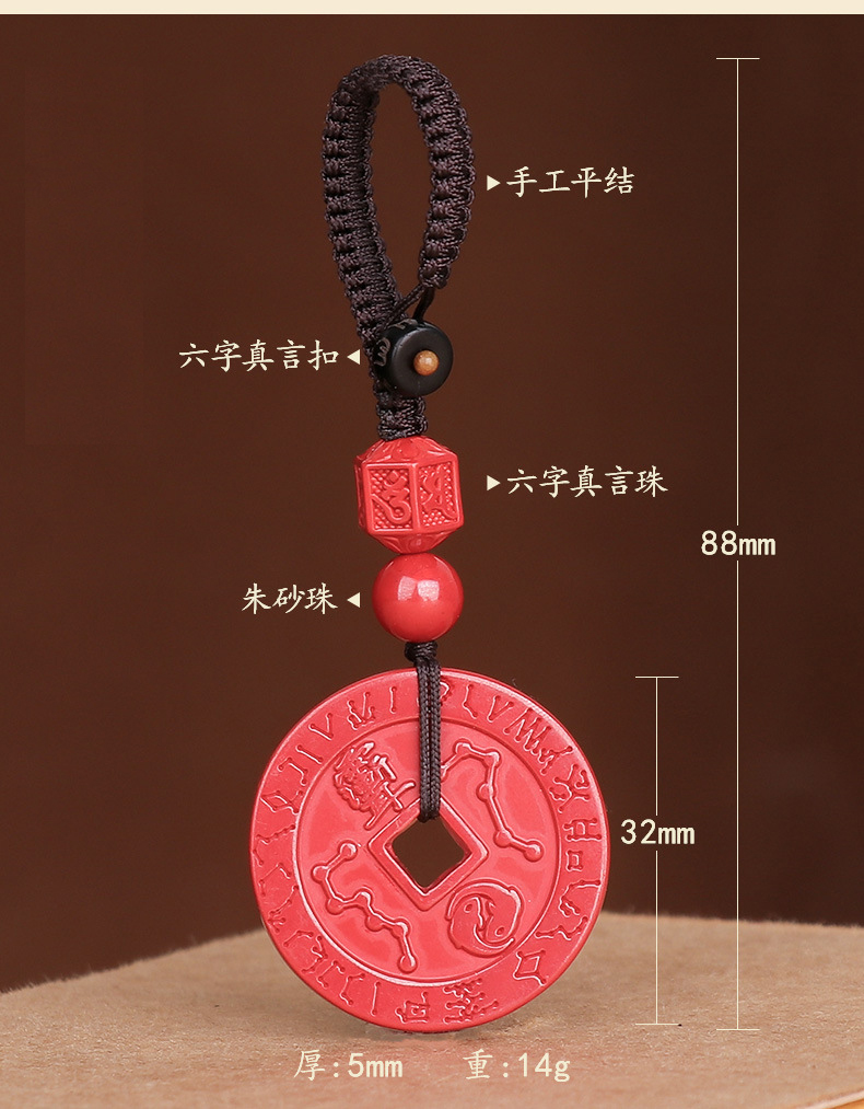 太清九字真言平安钱紫薇讳朱砂吊坠