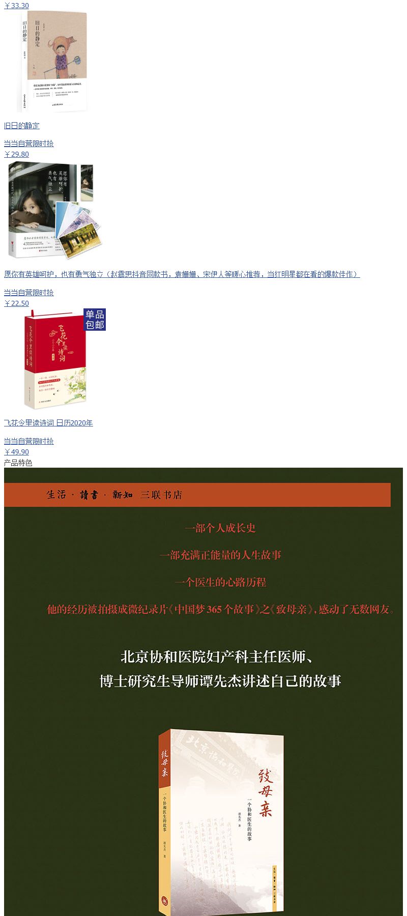 - 生活•读书•新知三联书店是一家具有悠久历史和光荣传统的出版机构。建店八十余年来,始终秉承“竭诚为读者服务”的宗旨,坚持“一流、新锐”的标准,被誉为“中国知识分子的精神家园”。