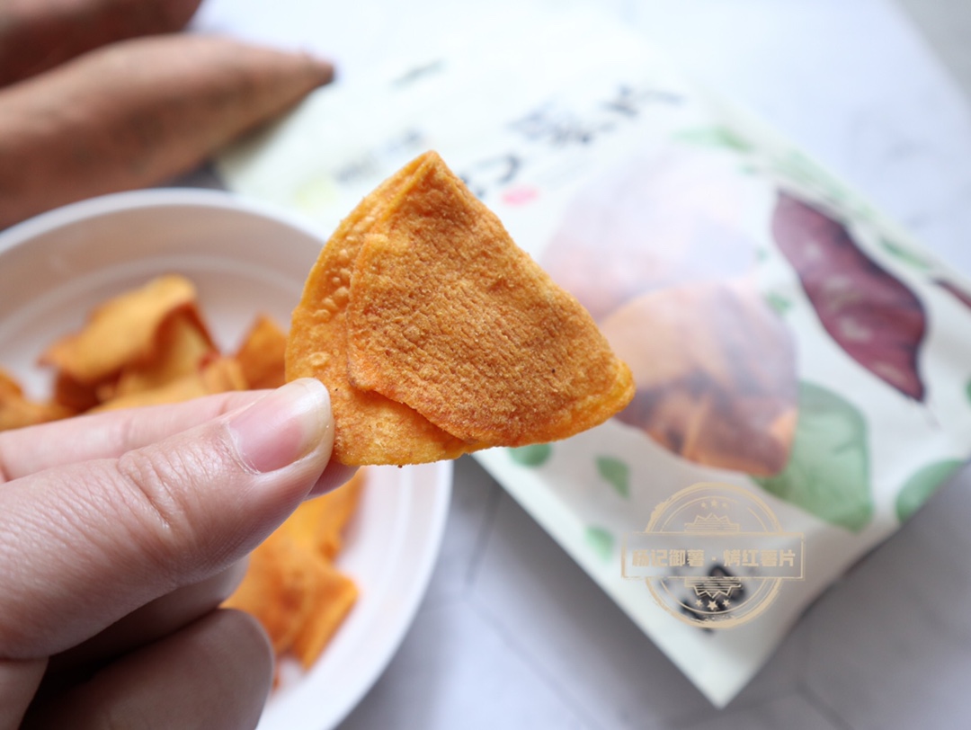 相比普通薯片,这款红薯片会更大块,营养保留的更充分,吃起来也更加过瘾,不会很硬,每一片都有踏实的饱足感,每一口都有红薯的香味,回味无穷。