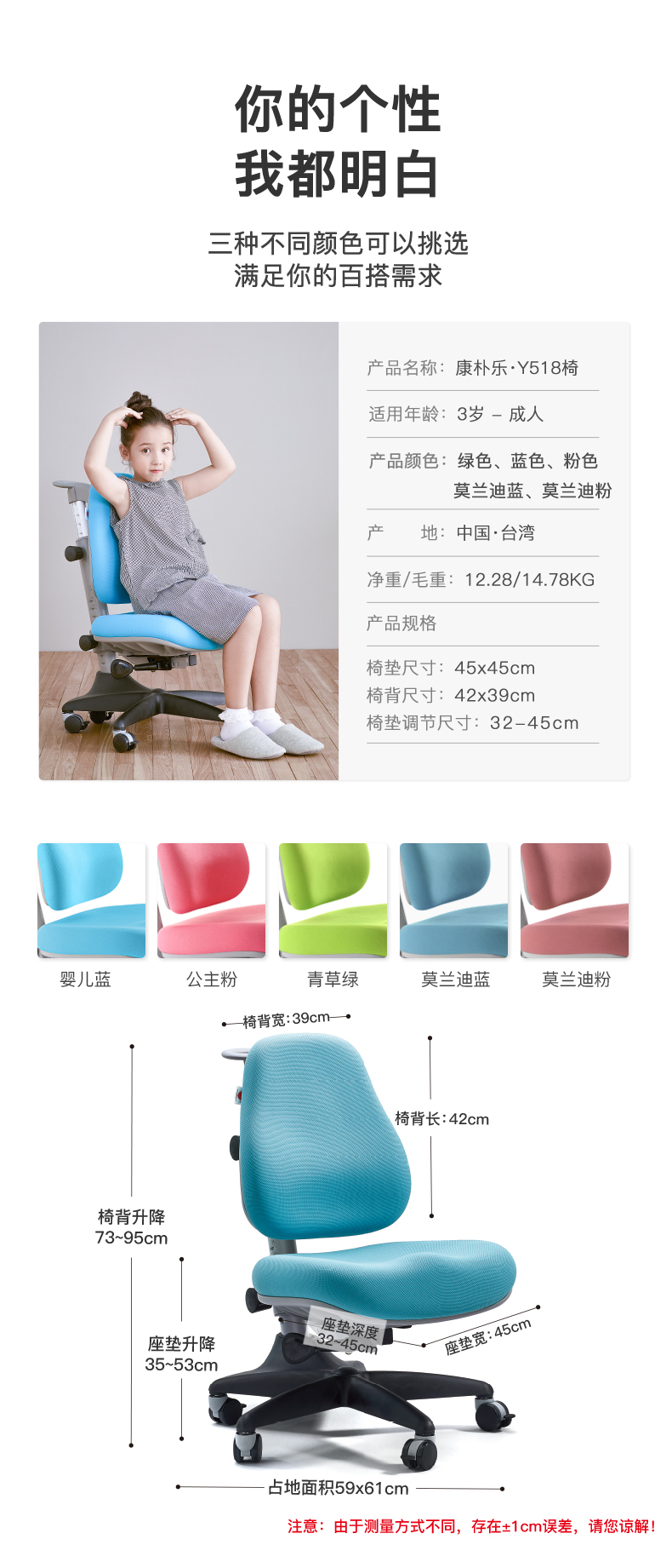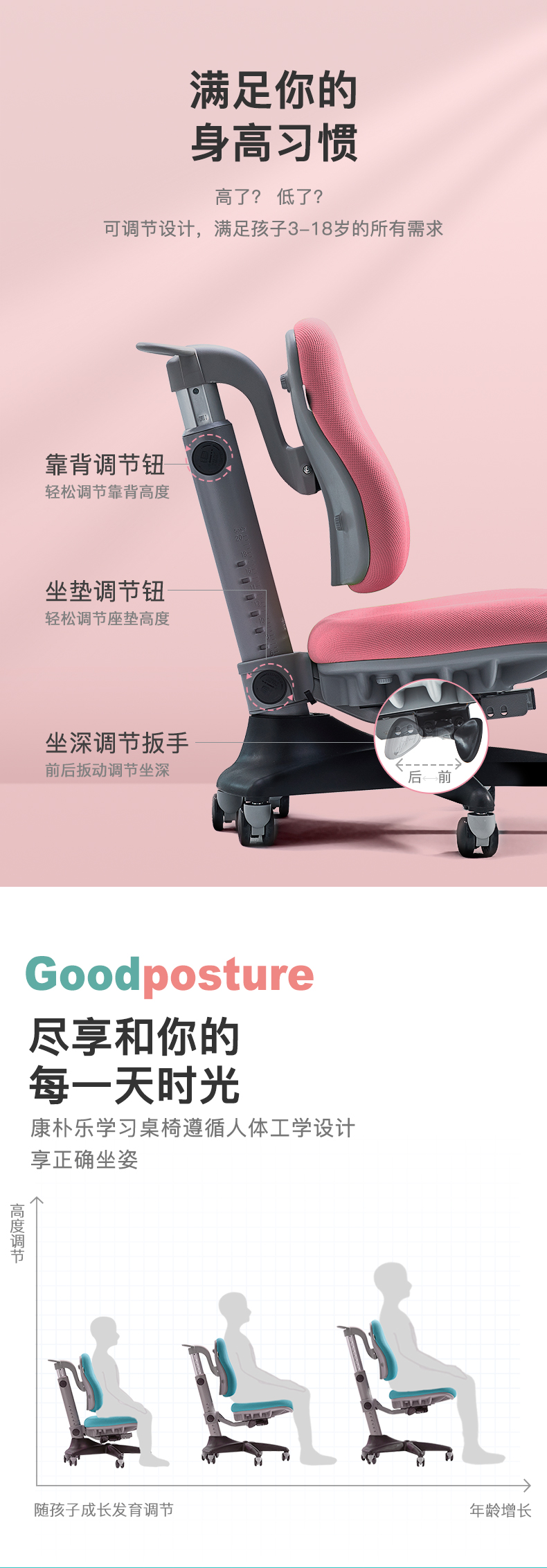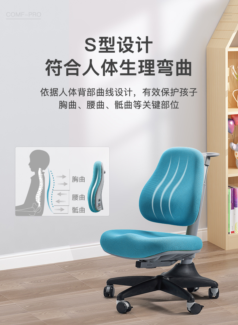 3岁+ 康朴乐学习椅 | 康朴乐牛顿椅Y518 S型贴合人体设计 符合人体生理弯曲 双层防水 舒适透气面料 靠背调节 发泡棉芯