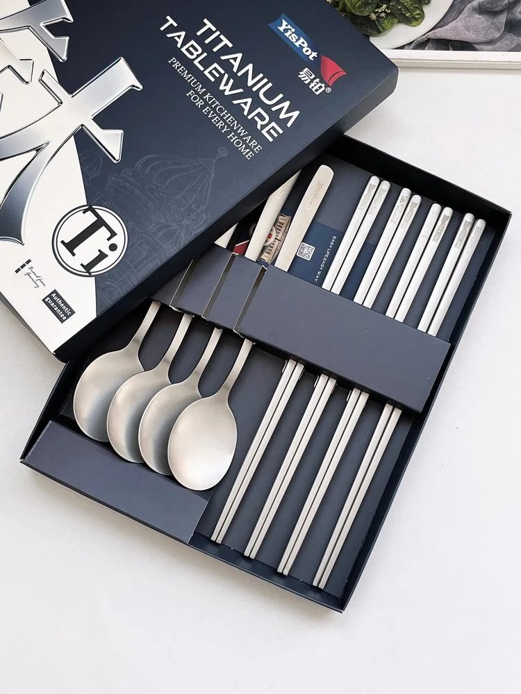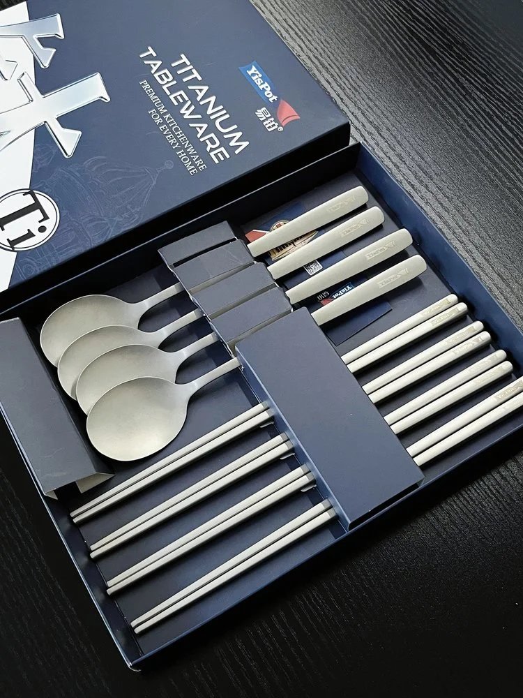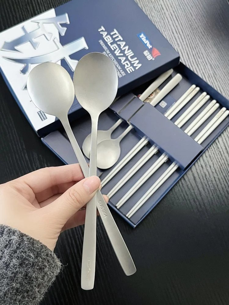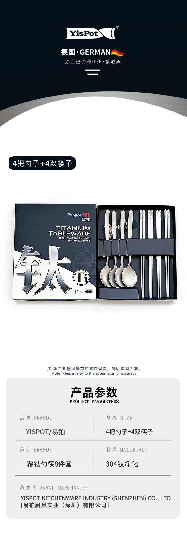 【钛净化黑科技】304 基底 + 钛净化 干饭更健康!『易铂304钛净化覆钛勺筷8件套』4 勺 4 筷一套承包三餐