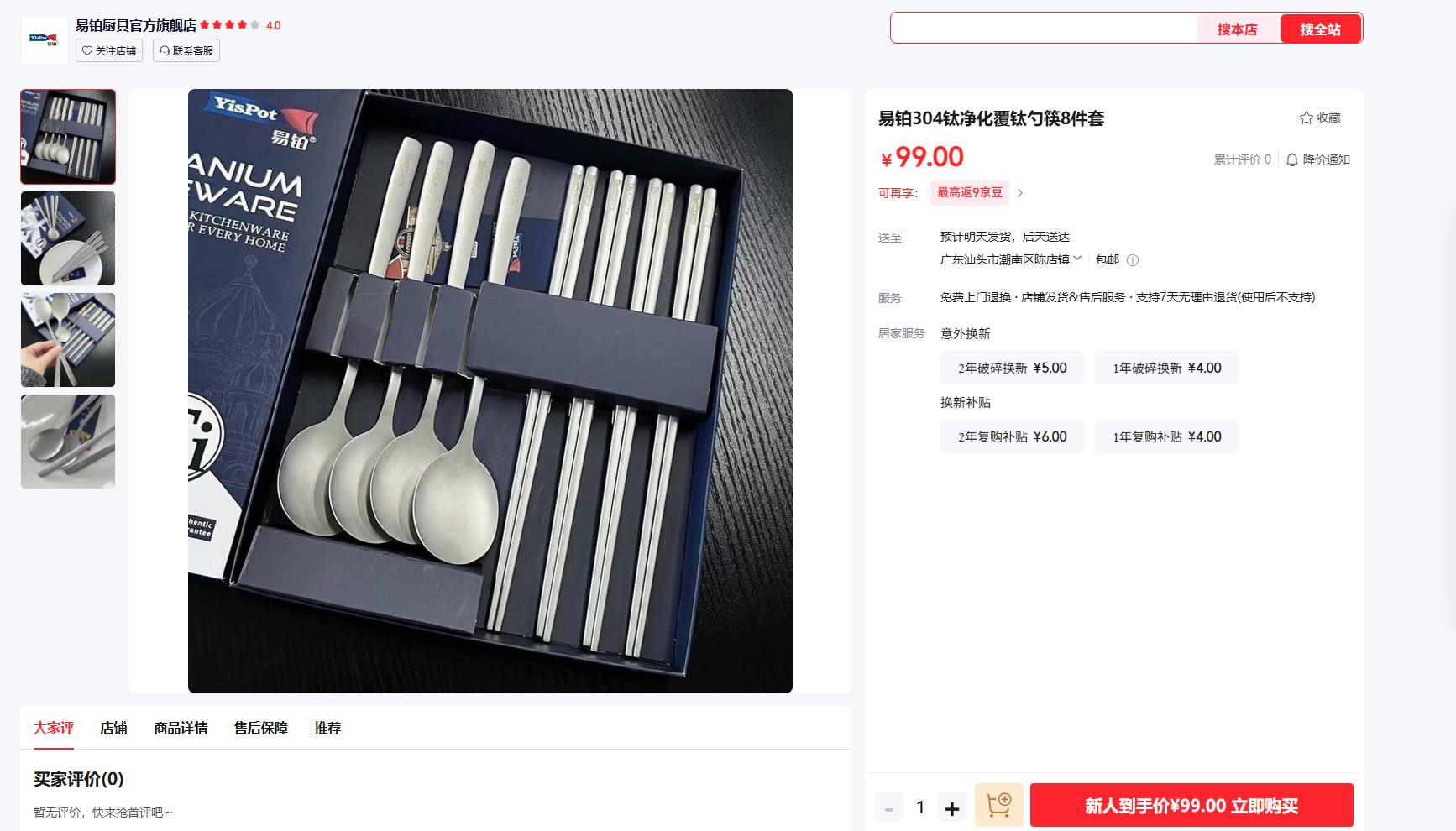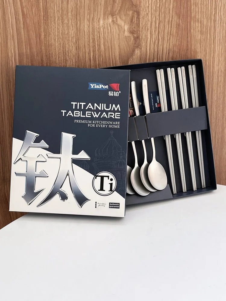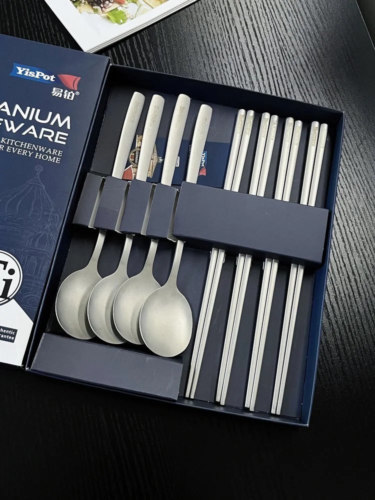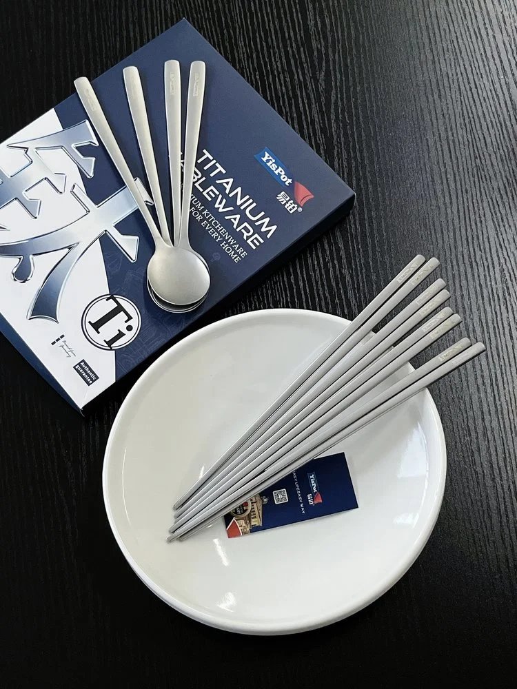 【钛净化黑科技】304 基底 + 钛净化 干饭更健康!『易铂304钛净化覆钛勺筷8件套』4 勺 4 筷一套承包三餐