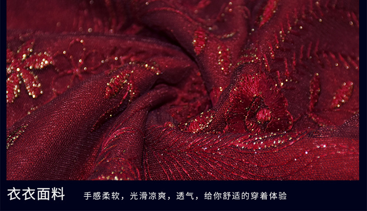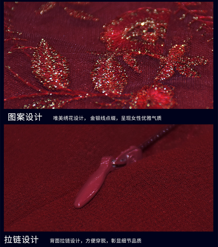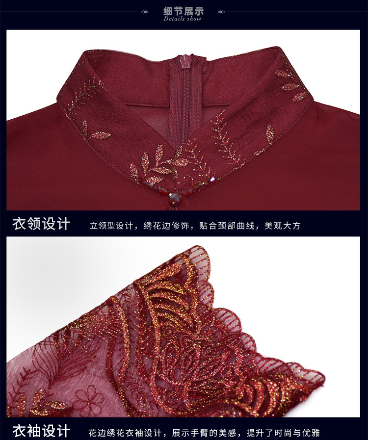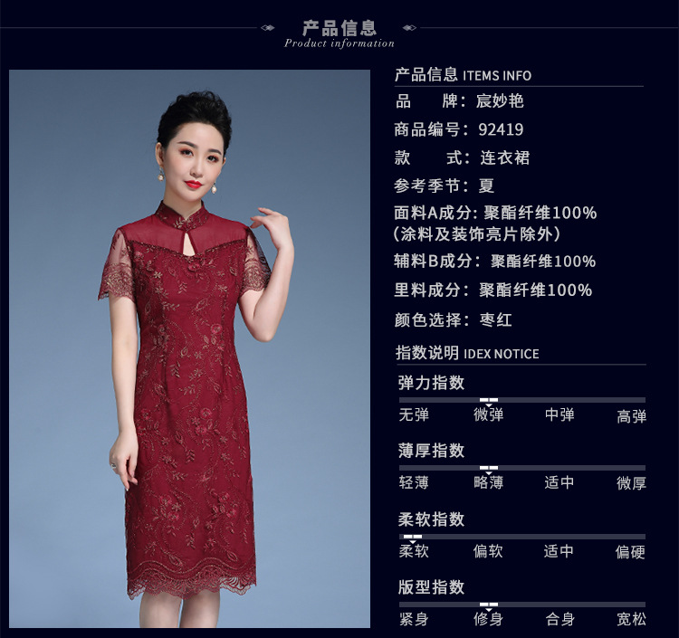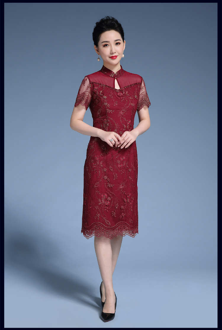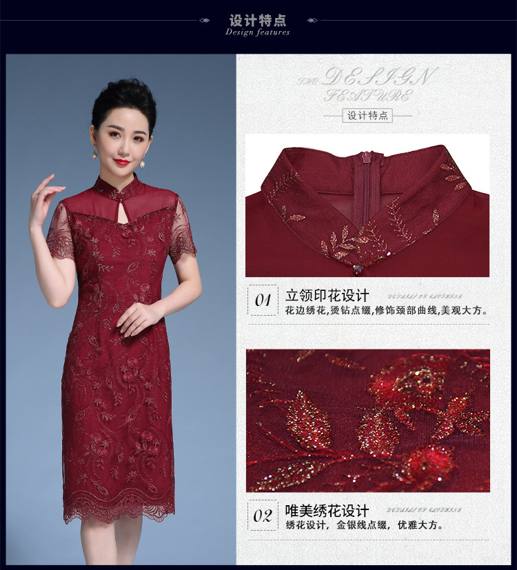 MY-92419新款时尚蕾丝短袖中长款宴会礼服改良旗袍连衣裙TZW
