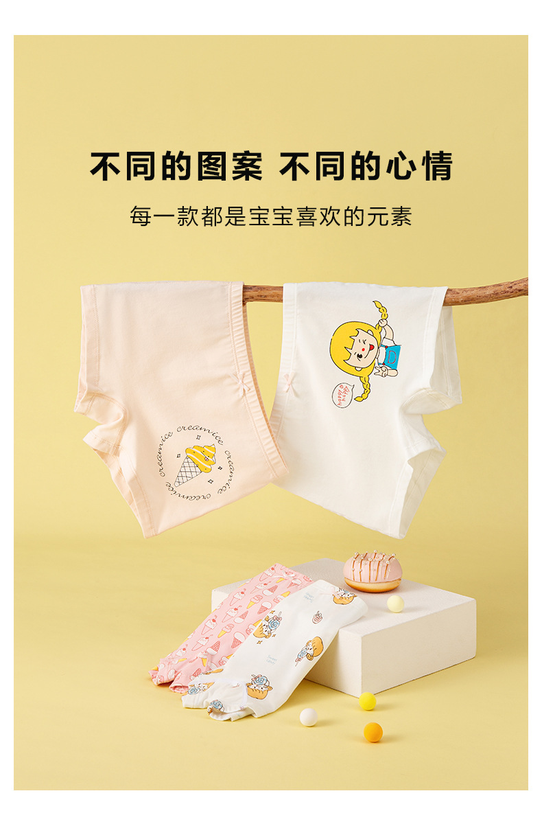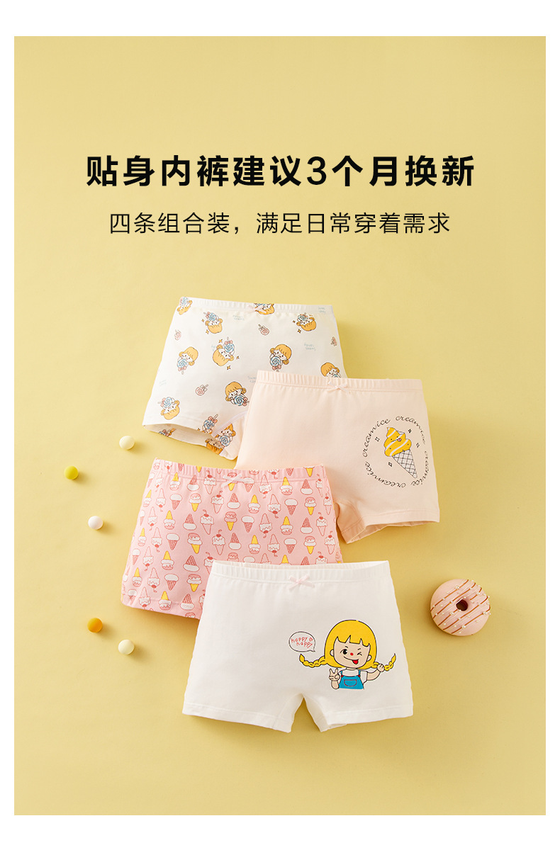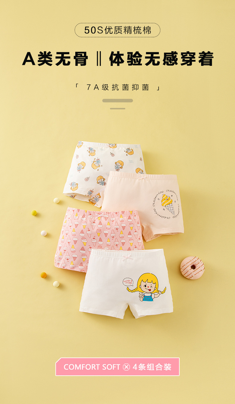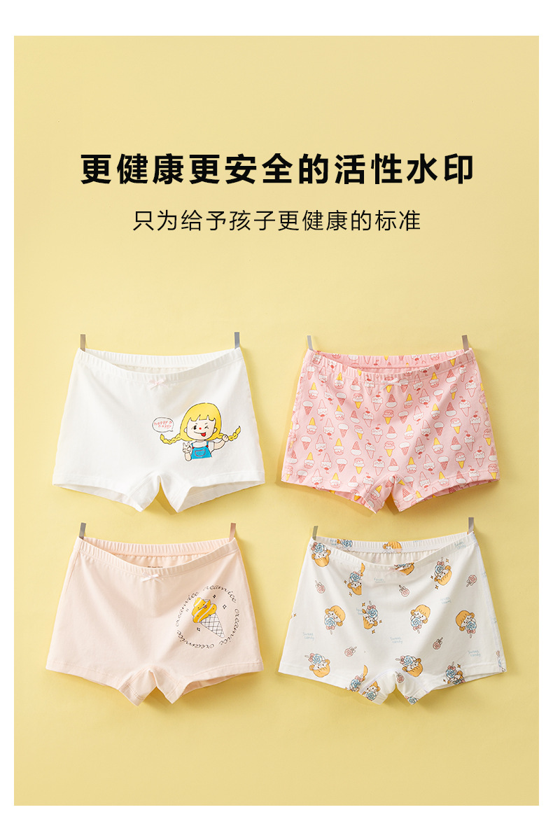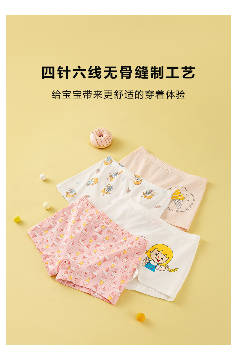 【四条礼盒装】歌贝儿女童内裤纯棉a类儿童内裤全棉7A级抗菌宝宝平角裤女孩短裤110-170cm