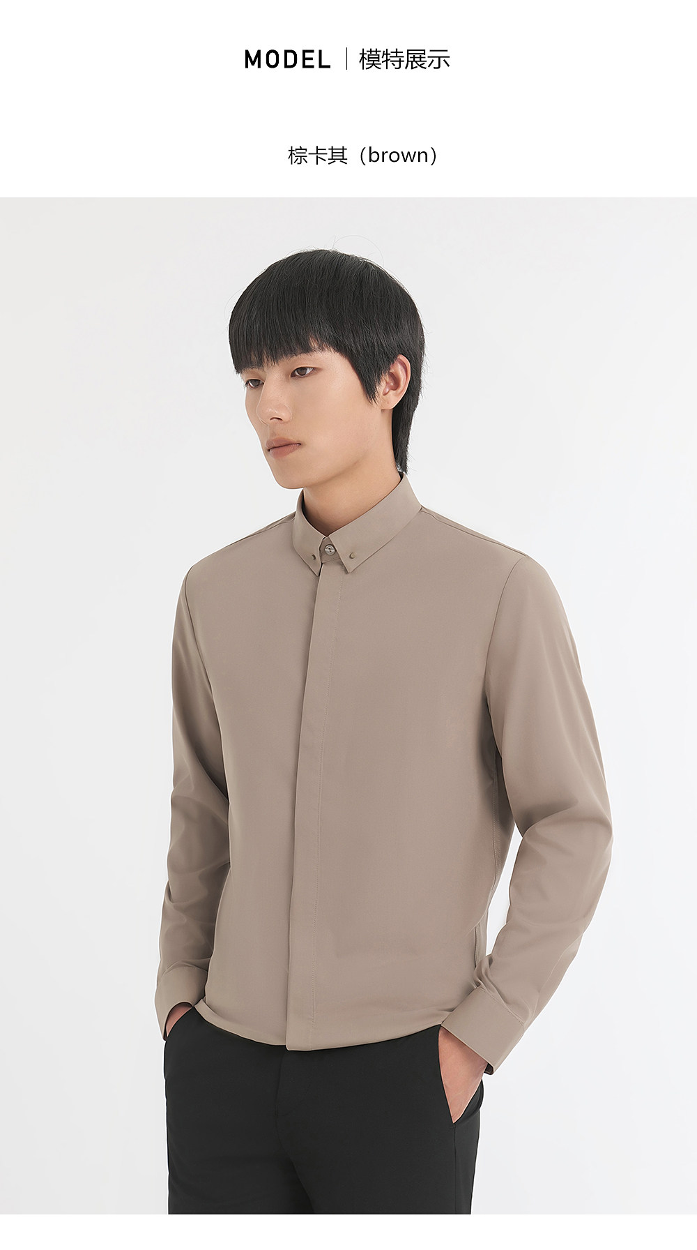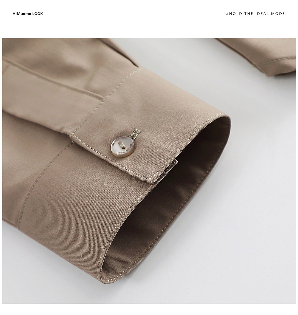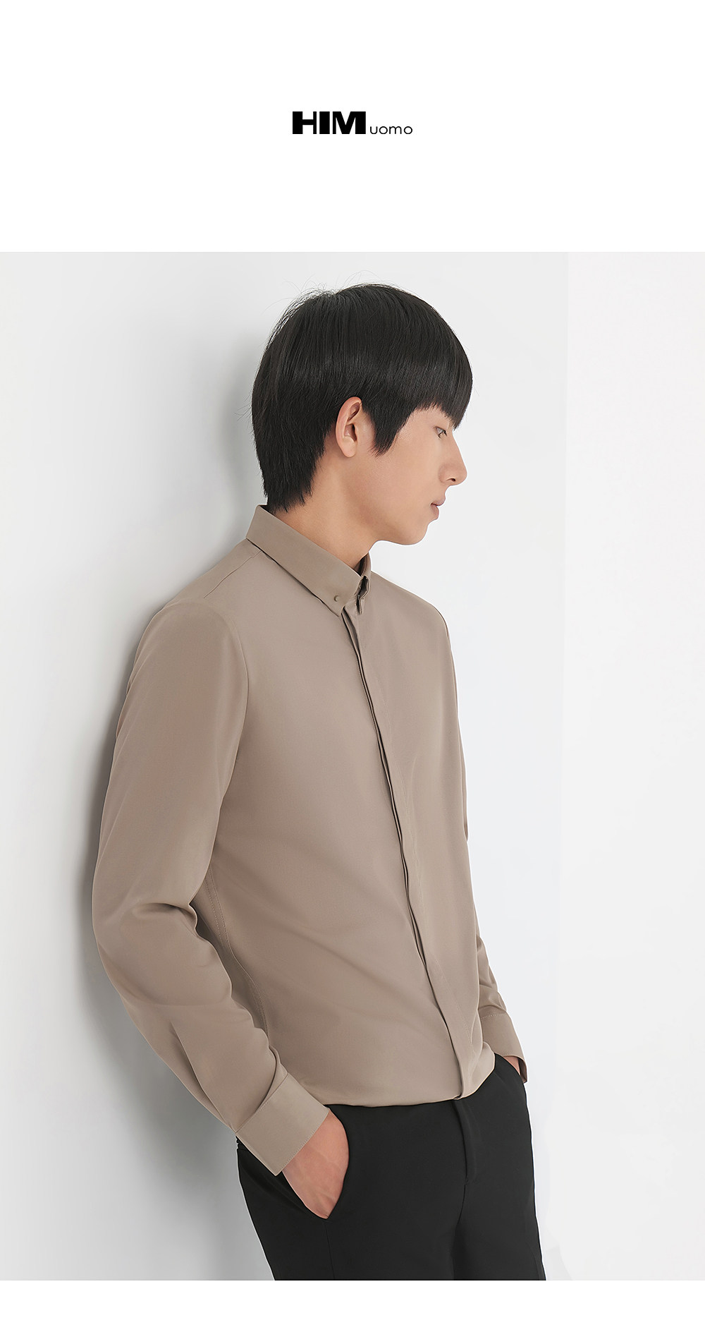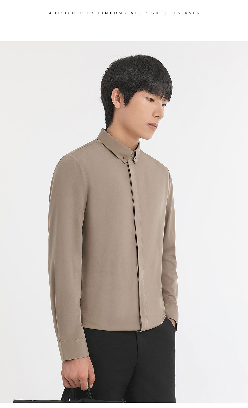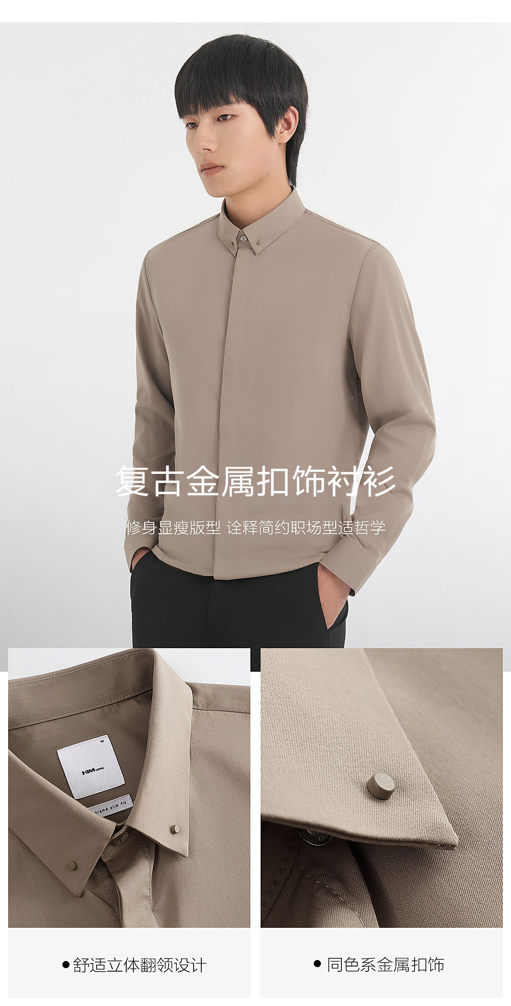 HIM漢崇 定制纽扣长袖衬衫男通勤商务正装时尚优雅衬衣 2024秋季