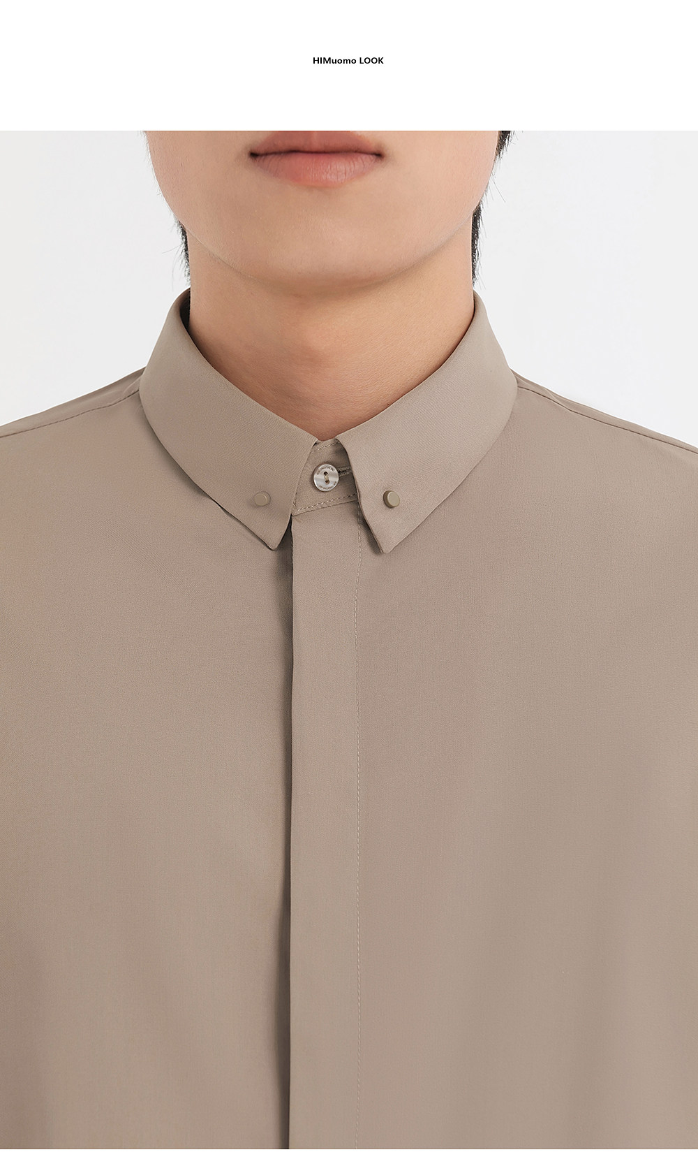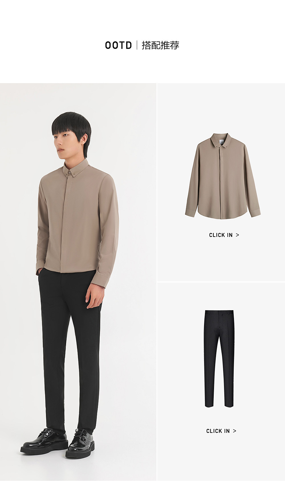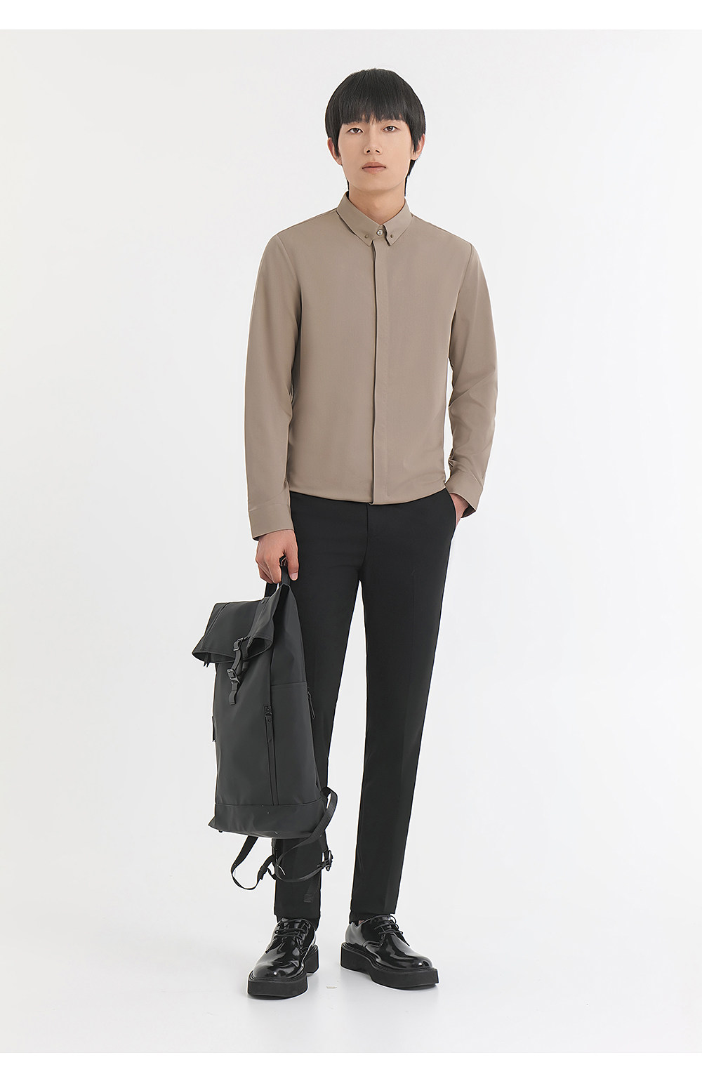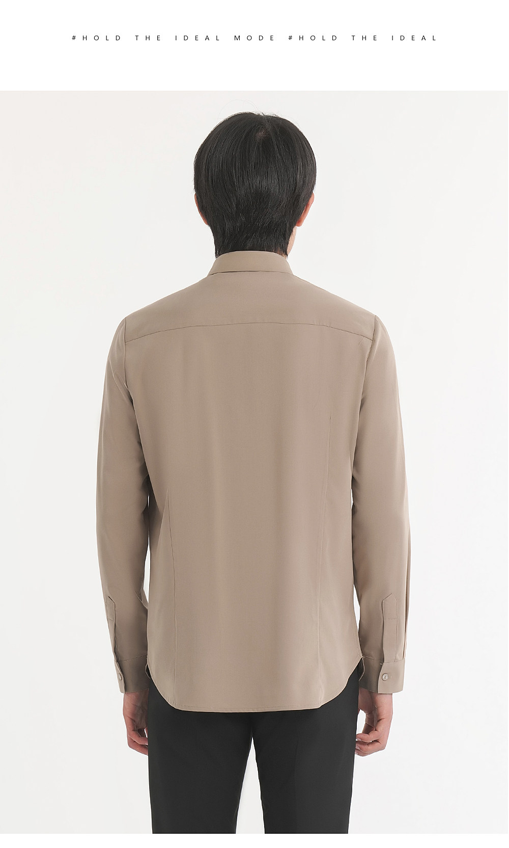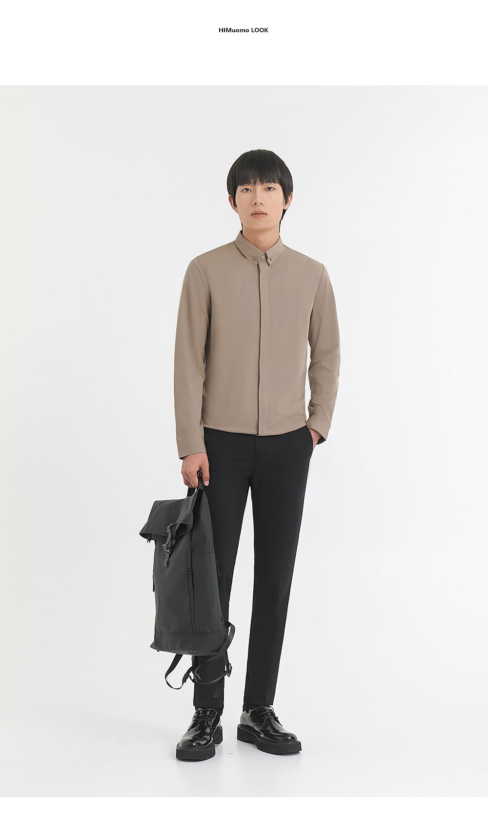 HIM漢崇 定制纽扣长袖衬衫男通勤商务正装时尚优雅衬衣 2024秋季