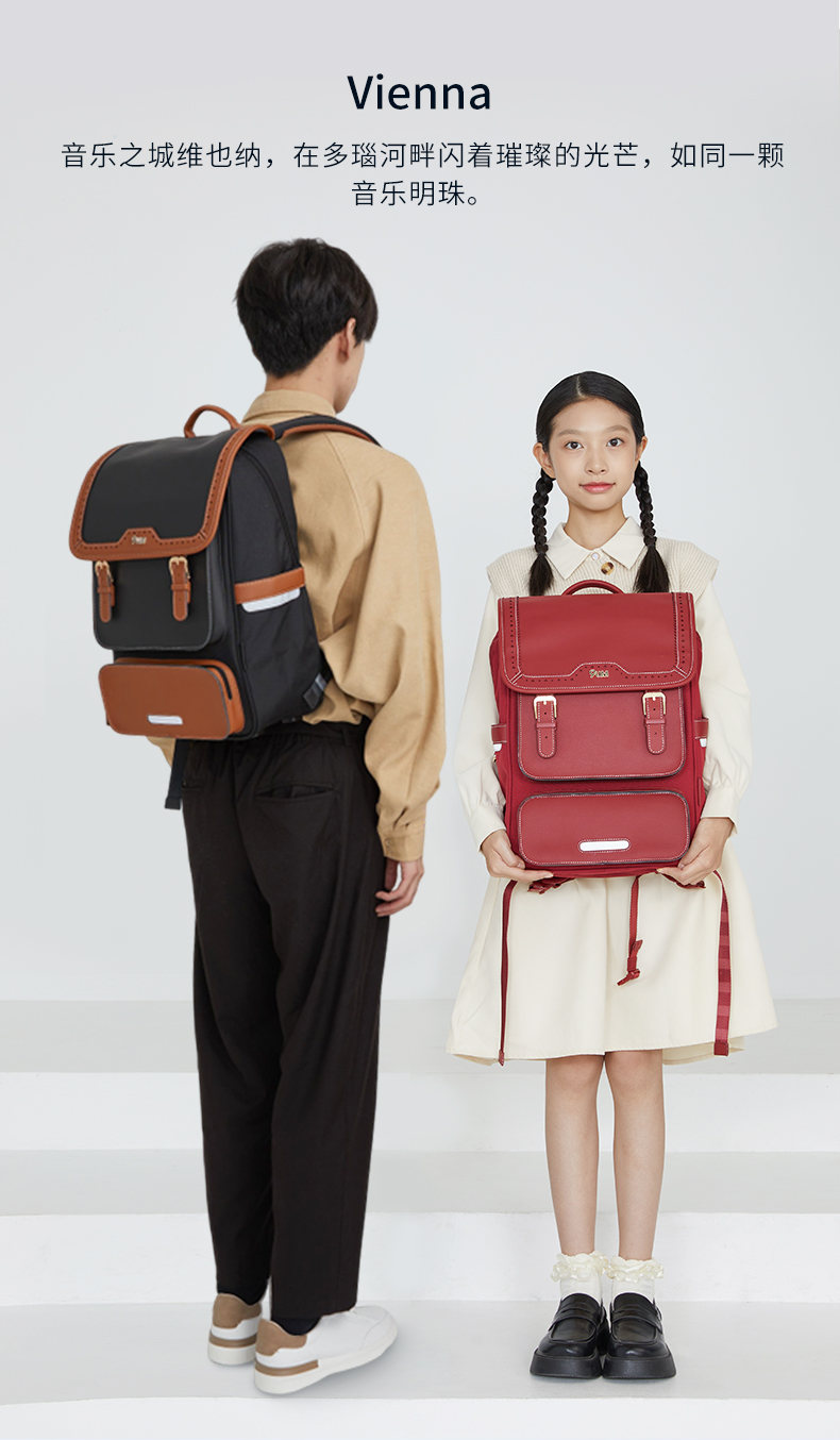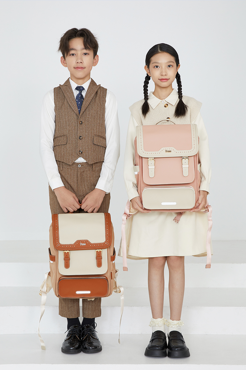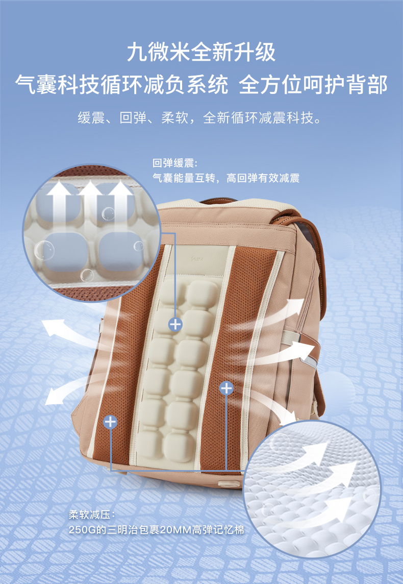 卡拉羊X九微米24L/26L中学生防下坠减负气囊缓震轻奢立体书包 维也纳 U5176+U5176L