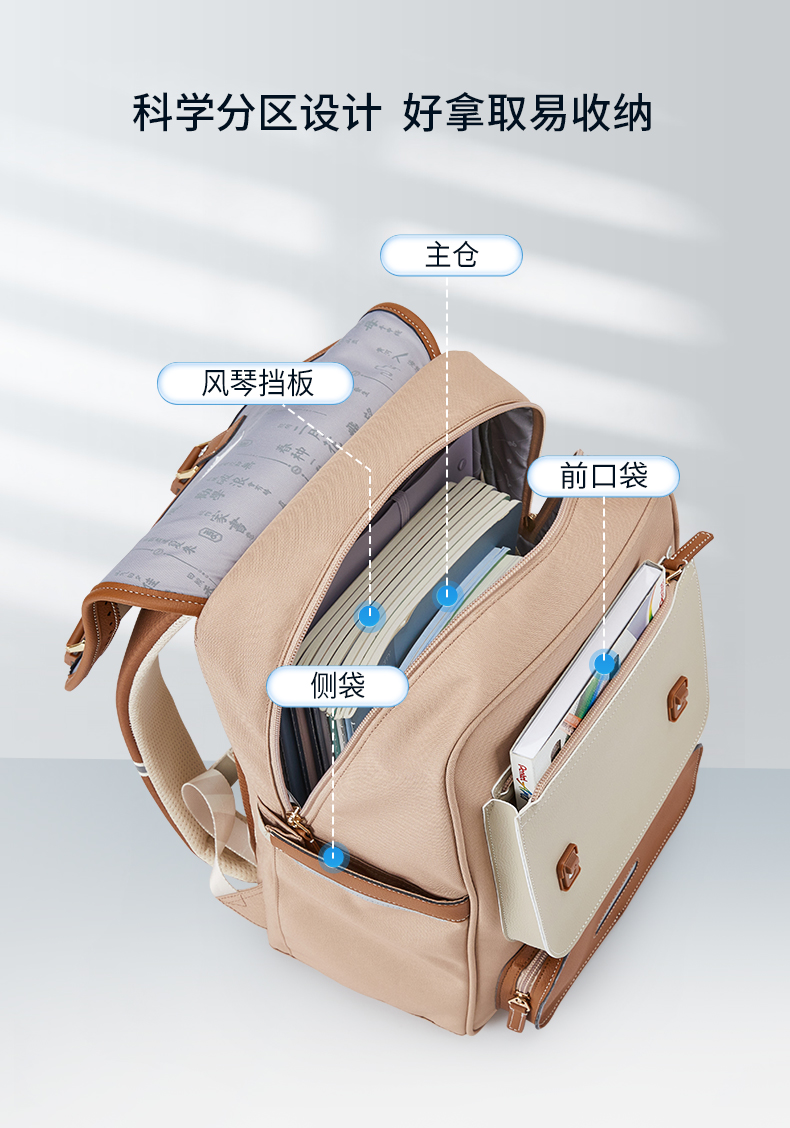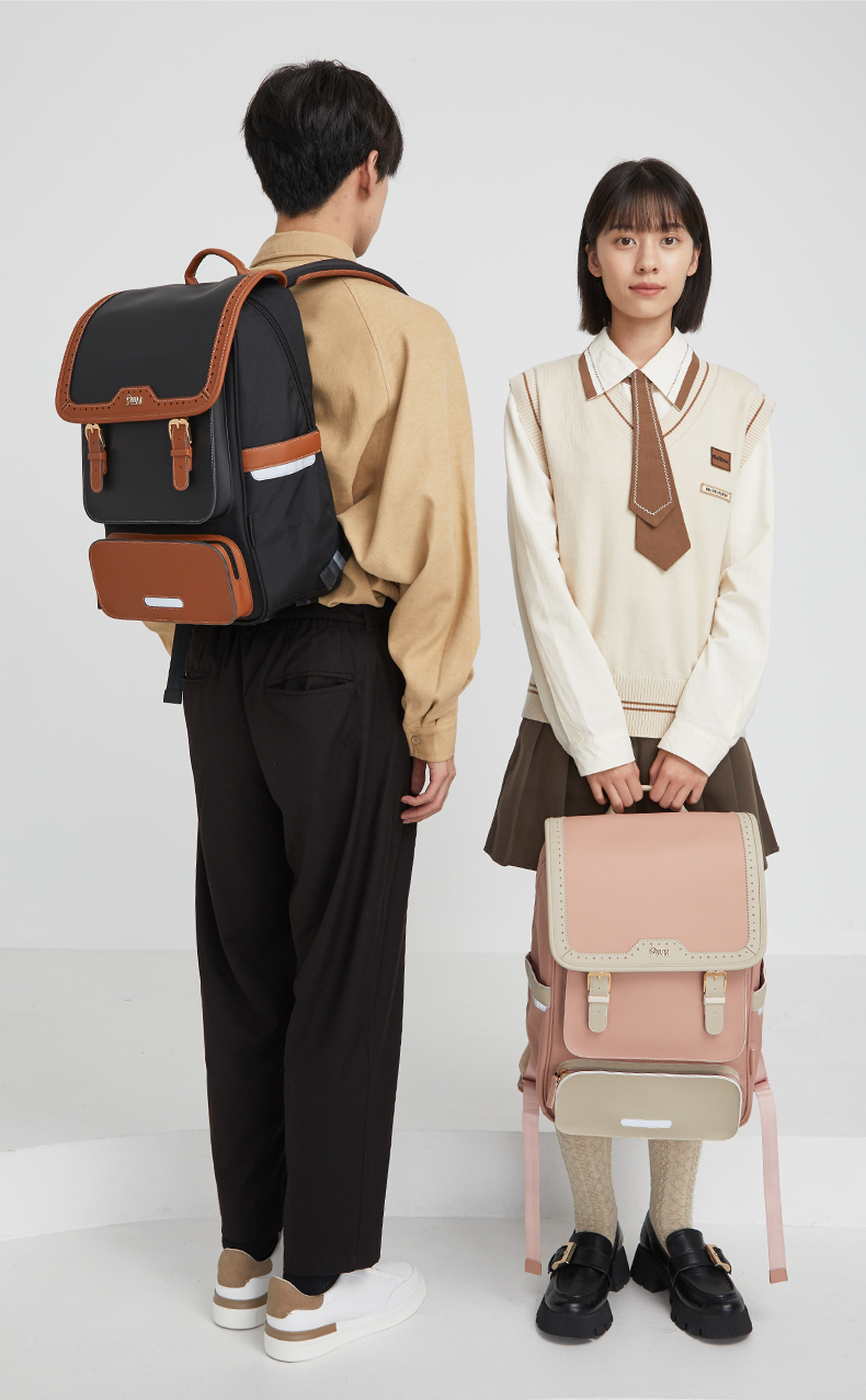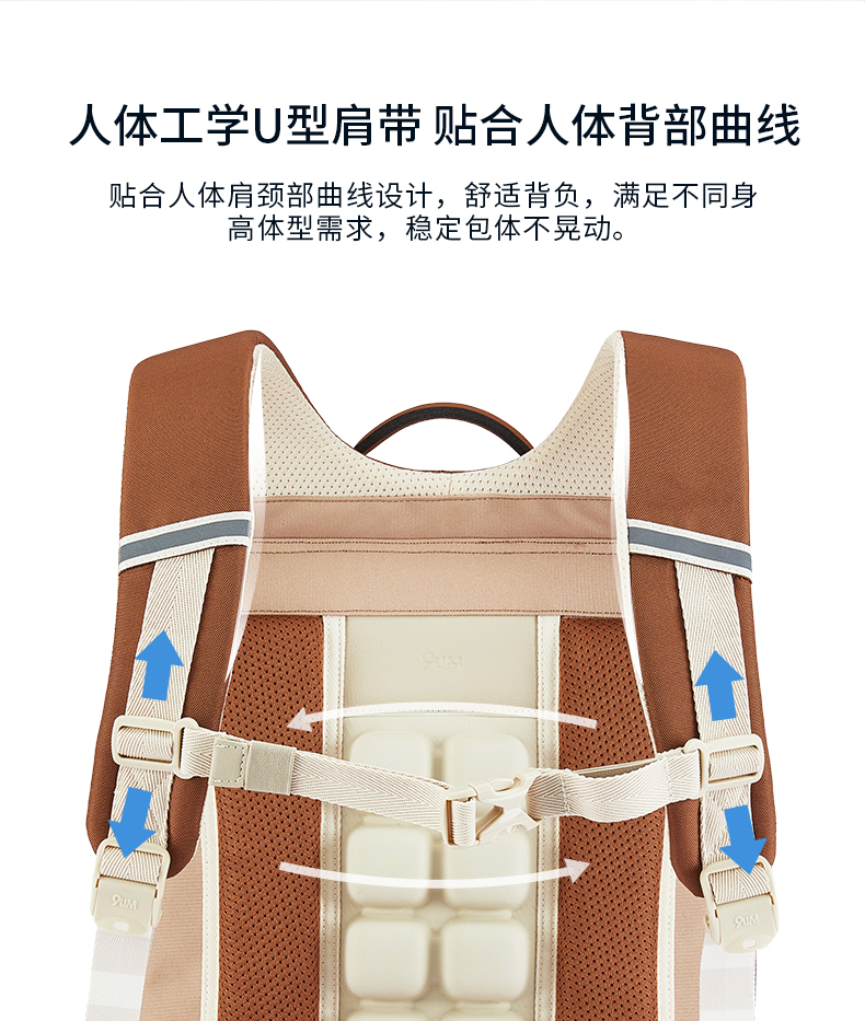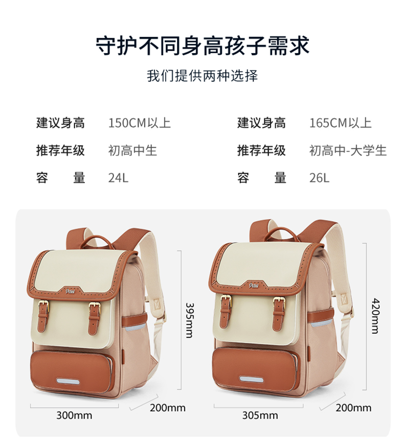 卡拉羊X九微米24L/26L中学生防下坠减负气囊缓震轻奢立体书包 维也纳 U5176+U5176L