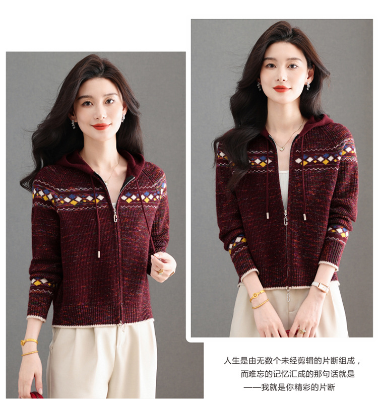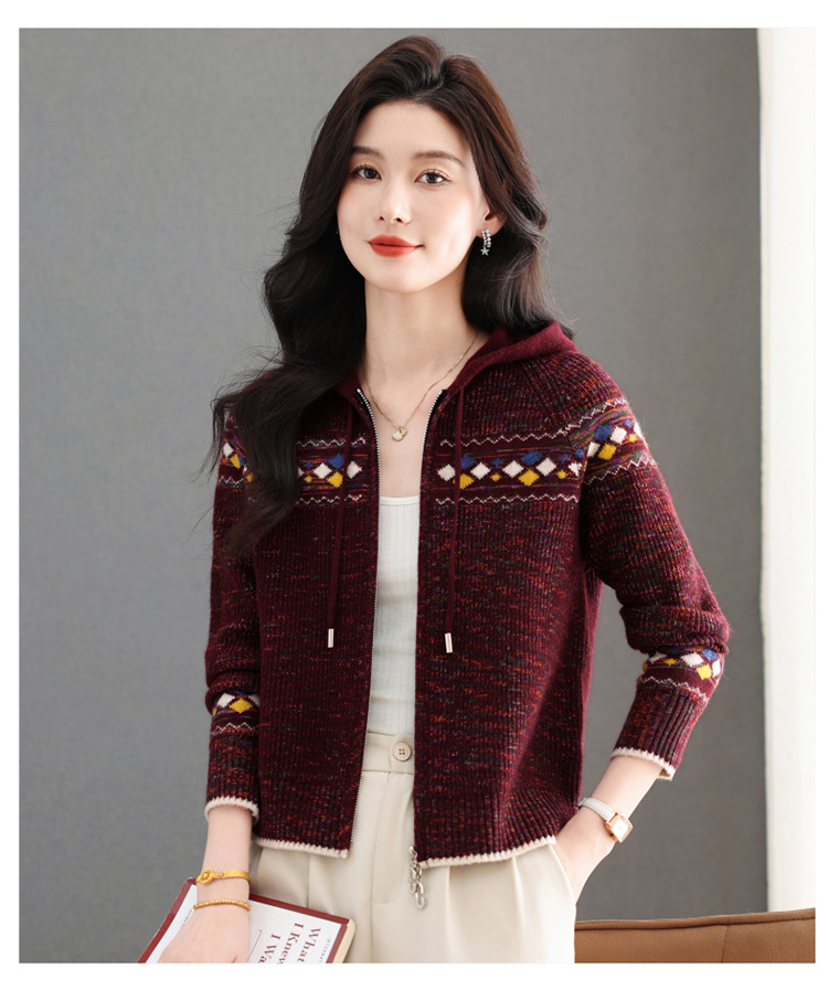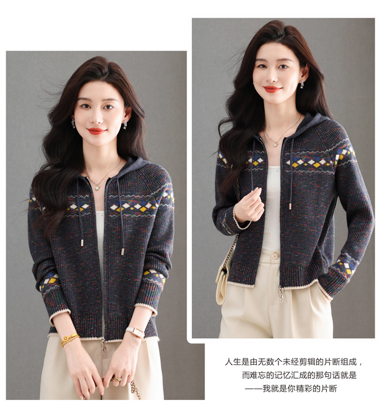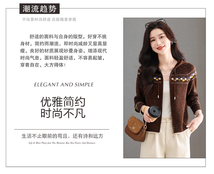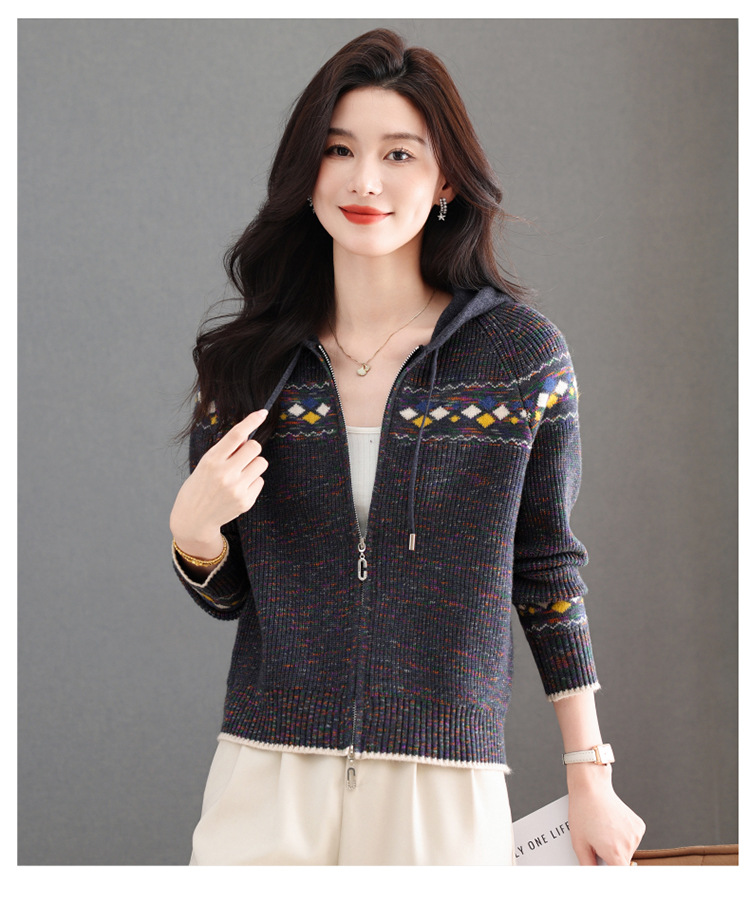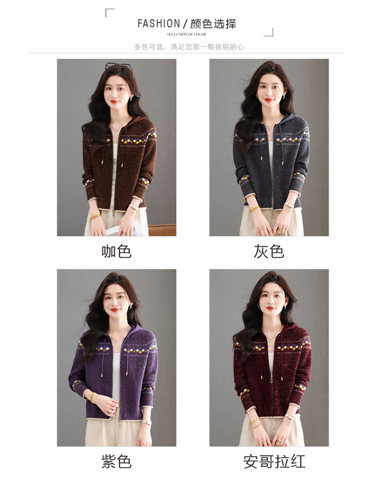 FCY YD8797连帽领长袖针织衫宽松休闲上衣外套 商品图2