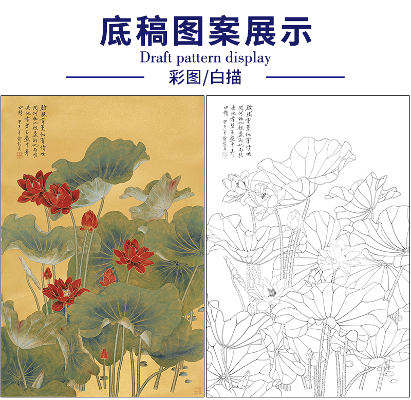 俞致贞花鸟工笔画白描底稿《荷花》临摹勾线高清打印稿ZZ24