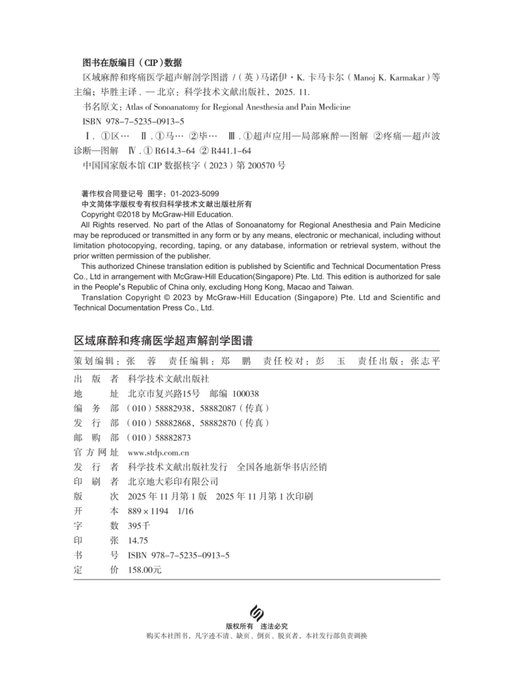 2025年新书:区域麻醉和疼痛医学超声解剖学图谱 毕胜主译(科学技术文献出版社)