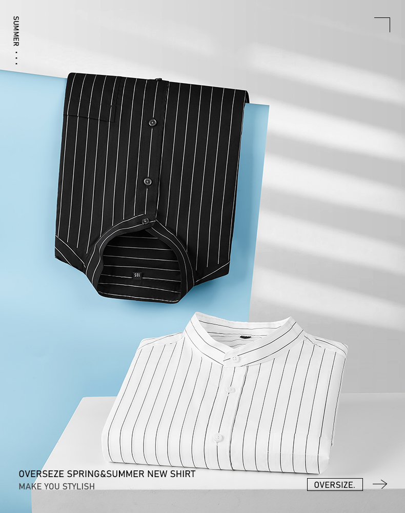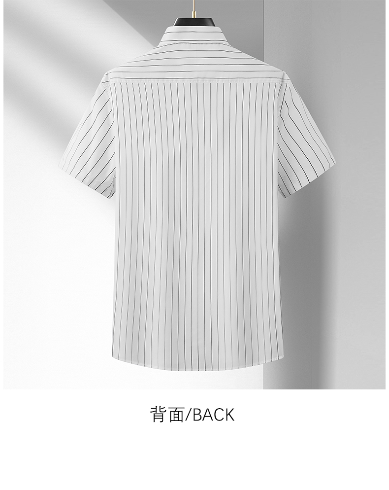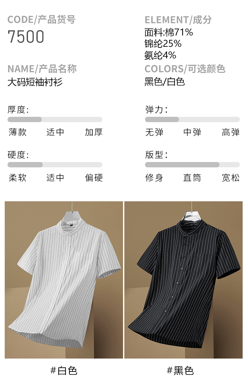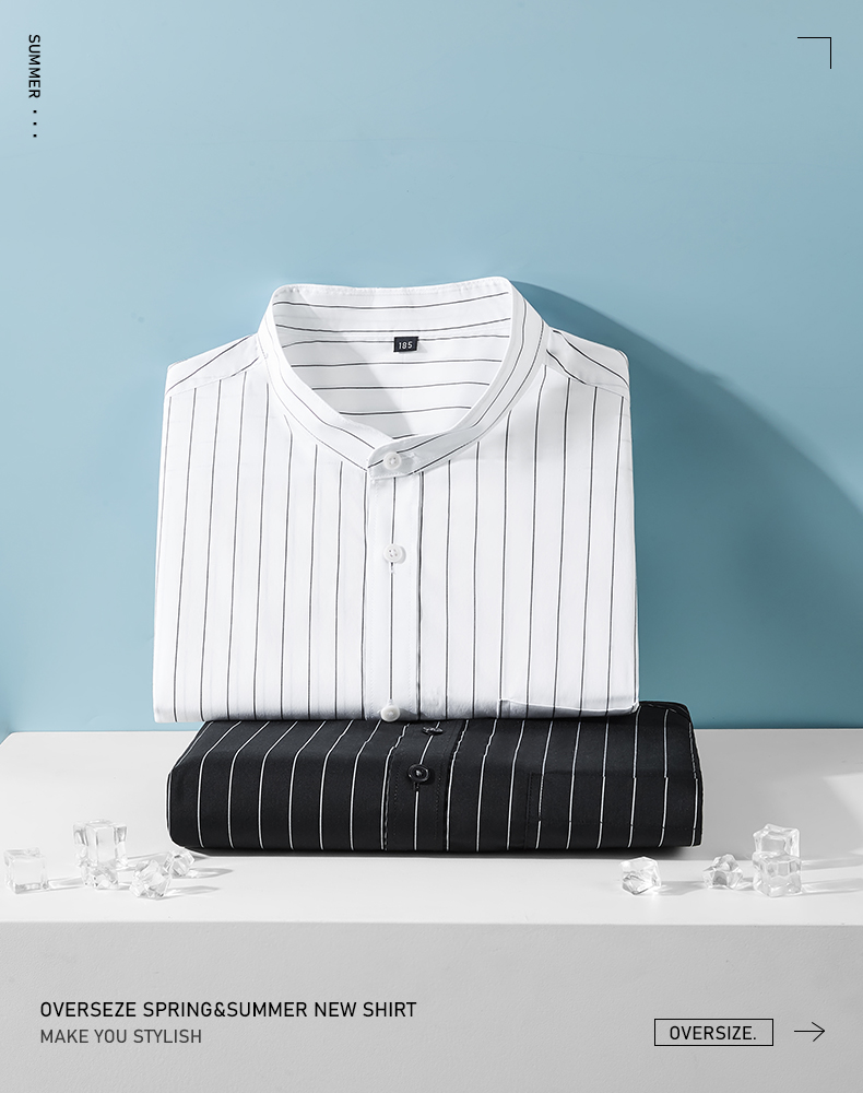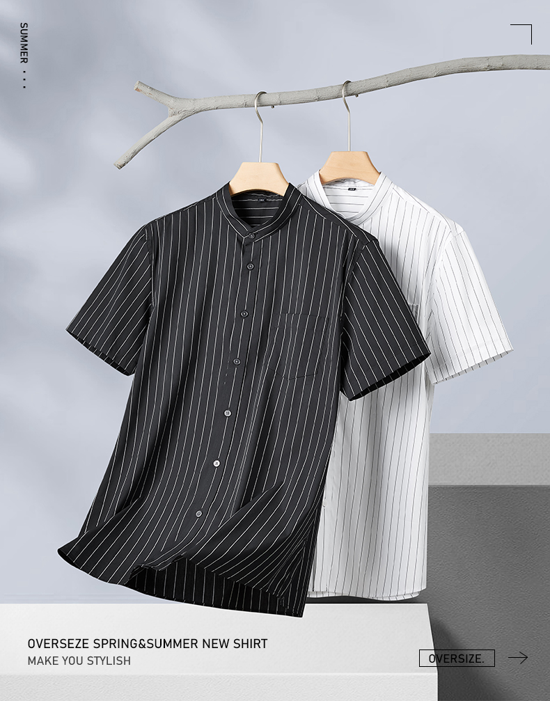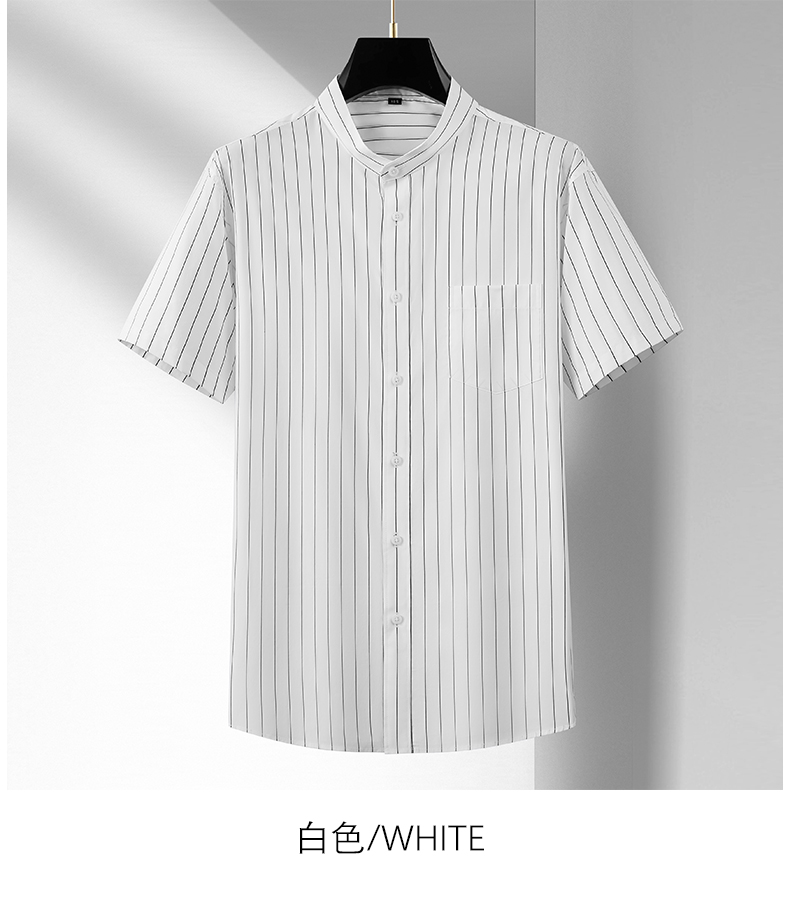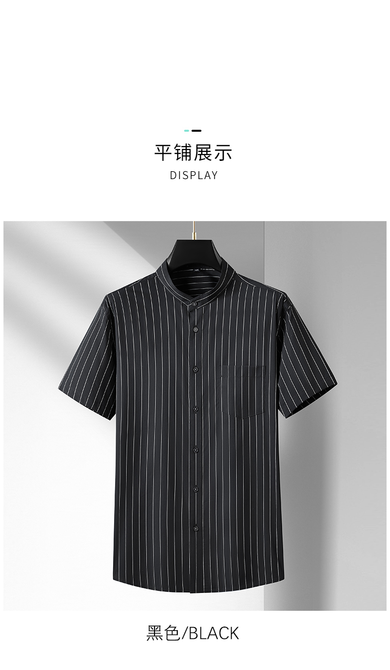 【棉质】【DM】大依优型大码立领条纹短袖衬衫加肥加大半袖衬衣男夏季薄款胖子休闲宽松上衣