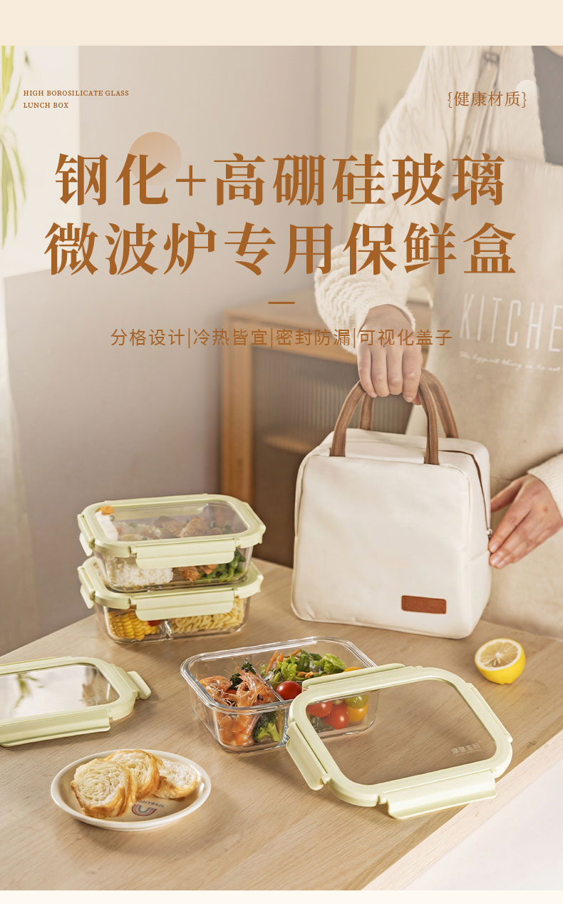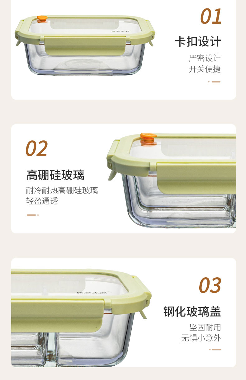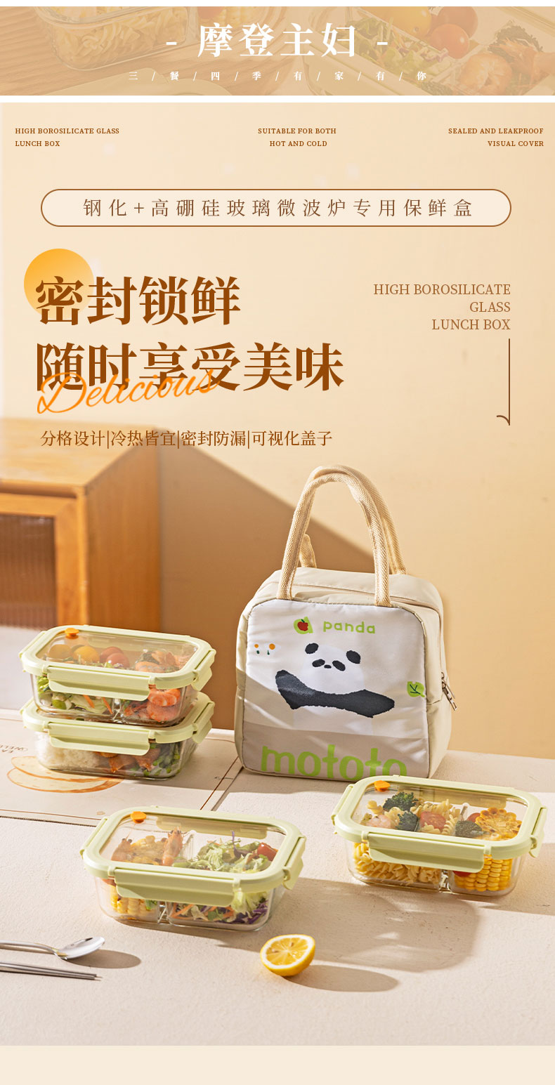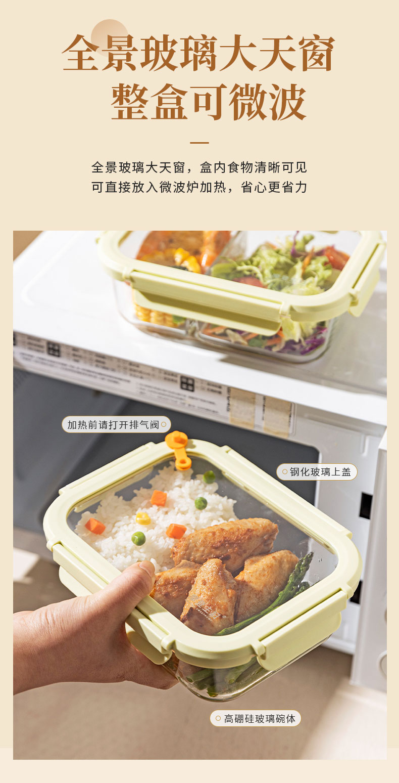 摩登主妇玻璃分格饭盒可微波炉加热上班族专用水果便当盒带饭餐盒
