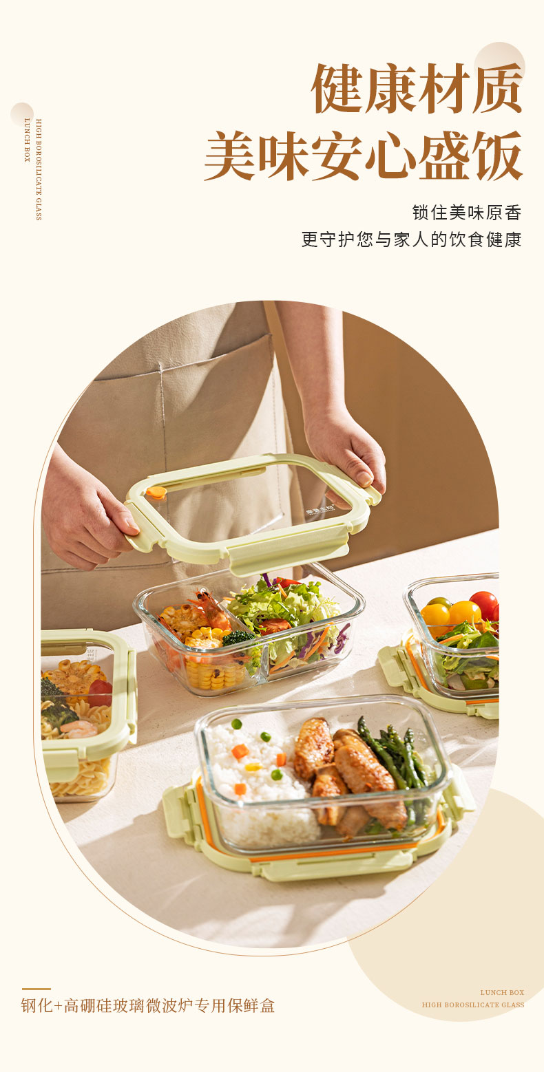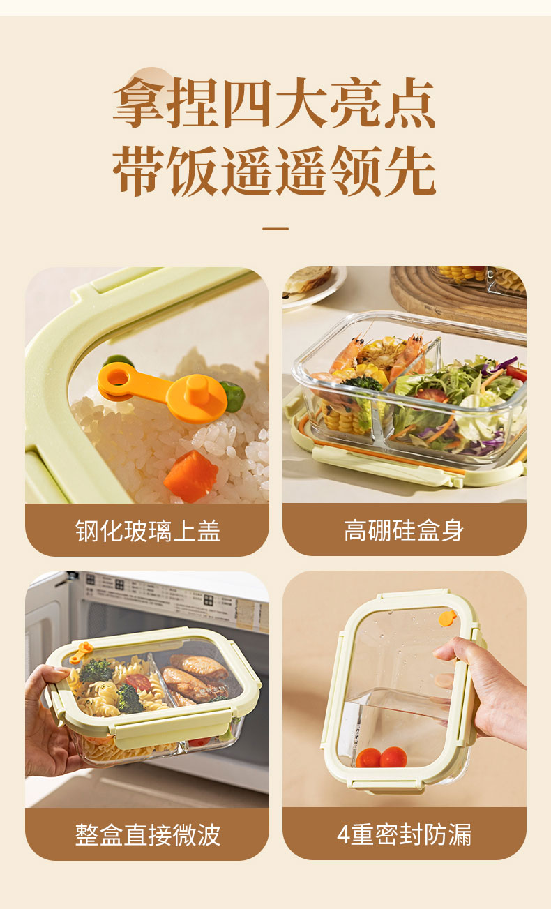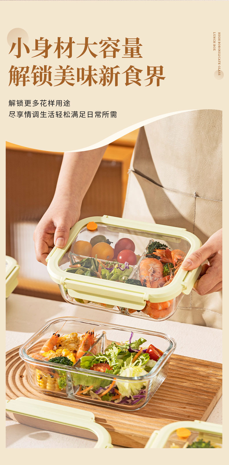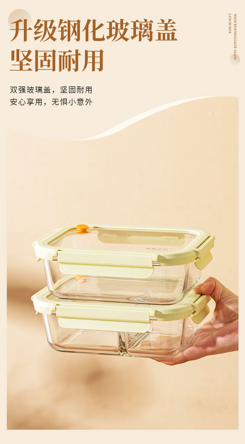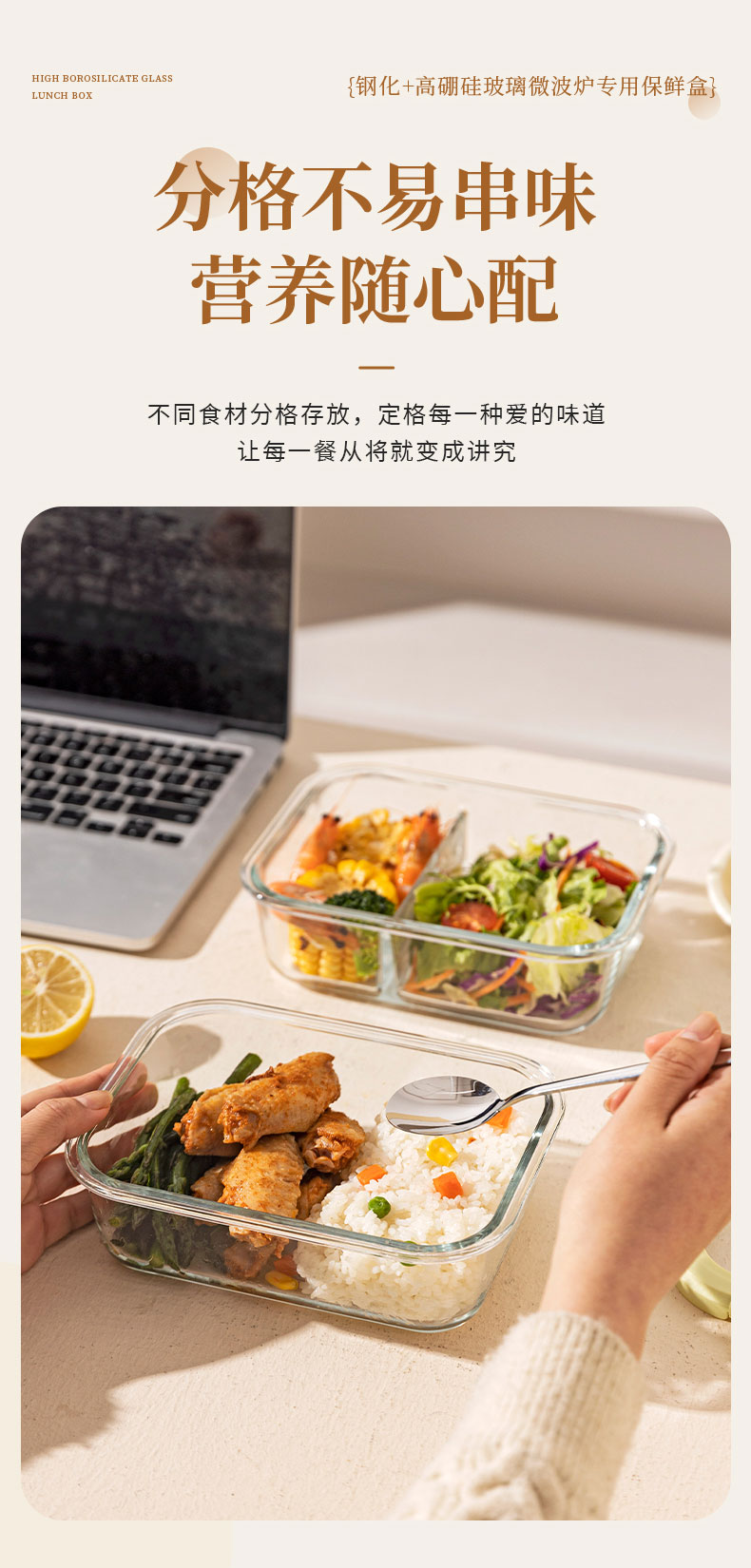 摩登主妇玻璃分格饭盒可微波炉加热上班族专用水果便当盒带饭餐盒