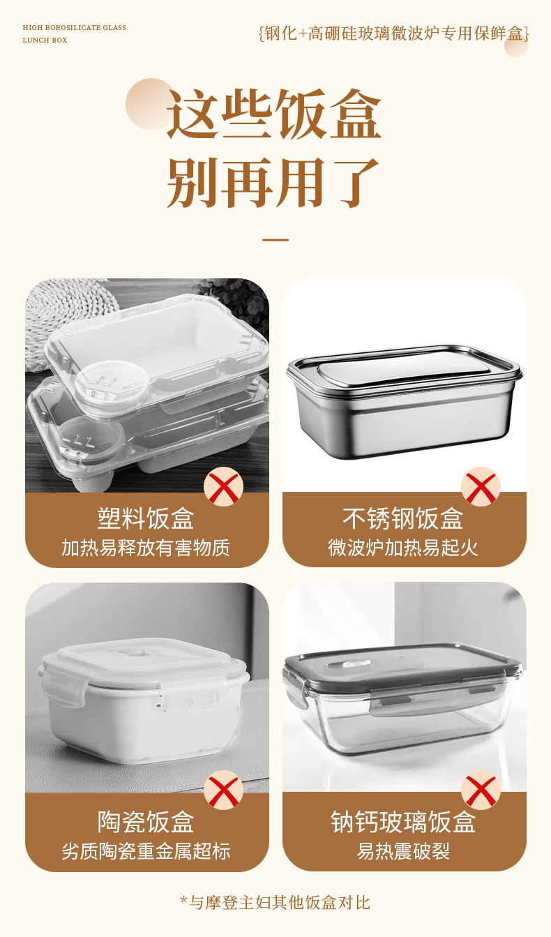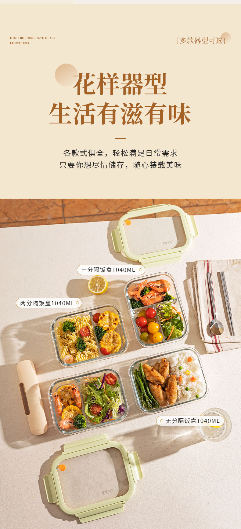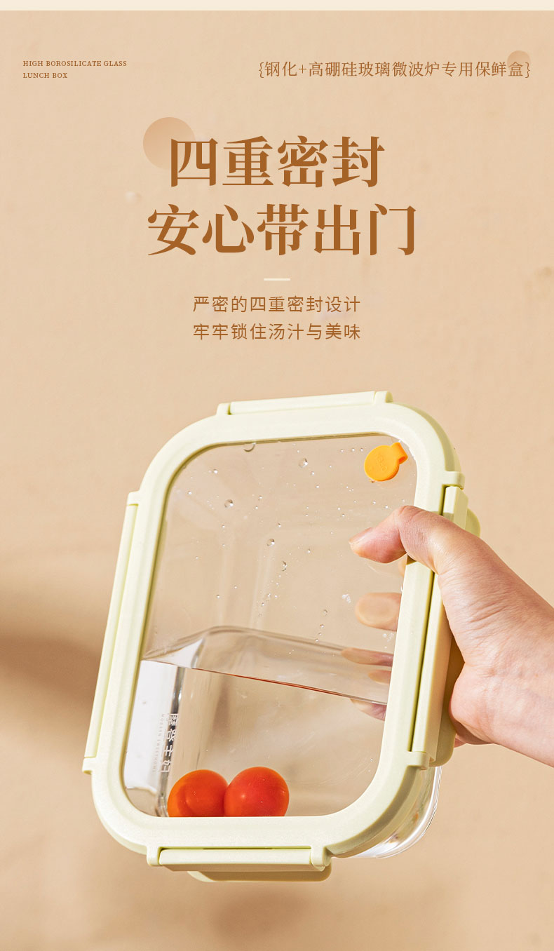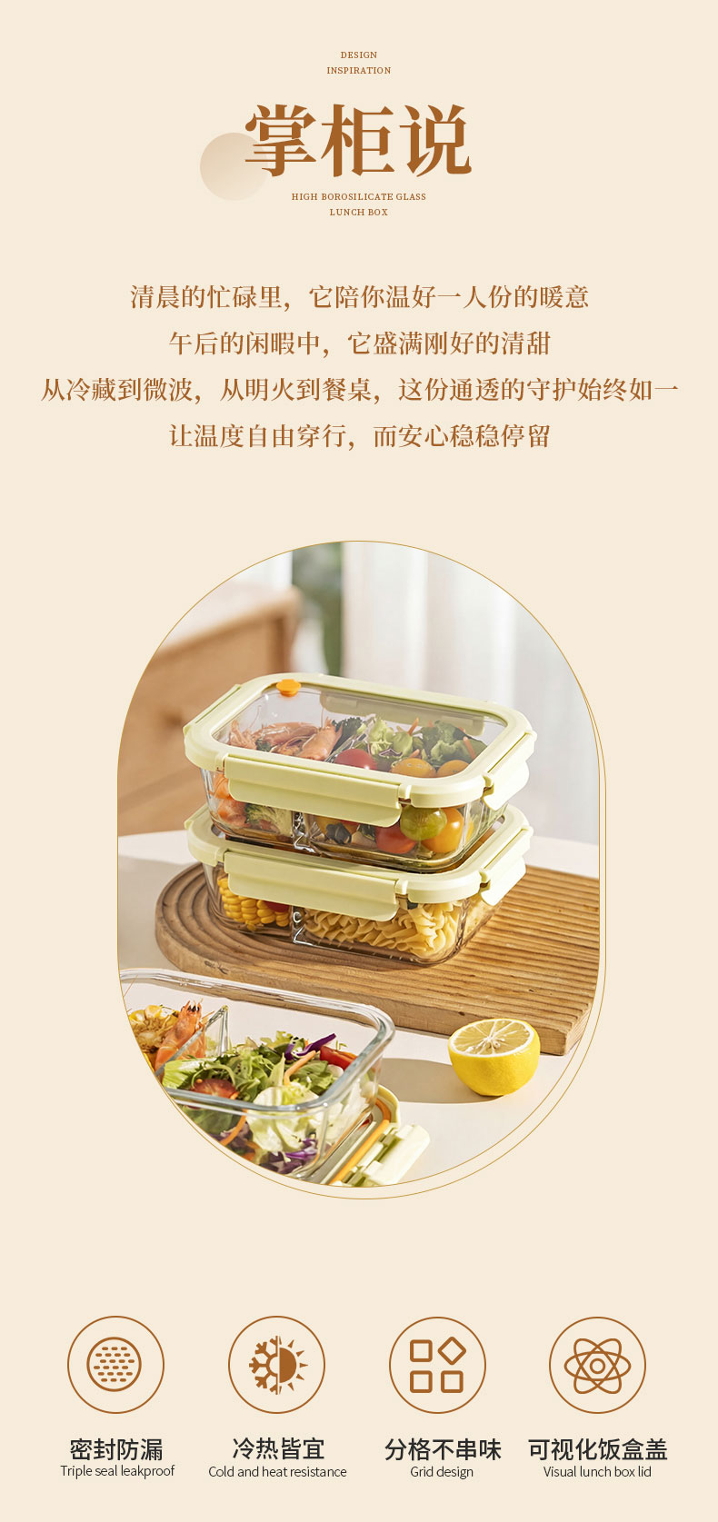 摩登主妇玻璃分格饭盒可微波炉加热上班族专用水果便当盒带饭餐盒