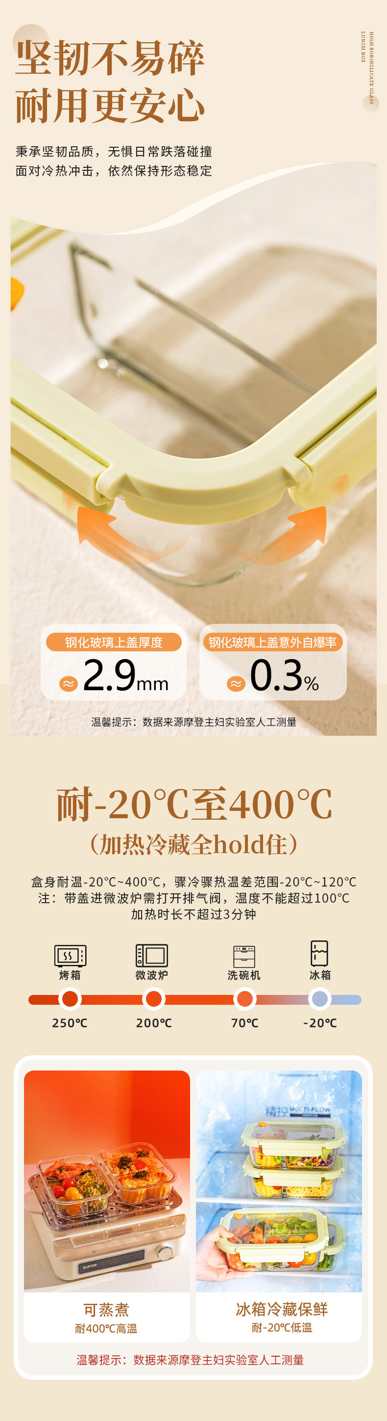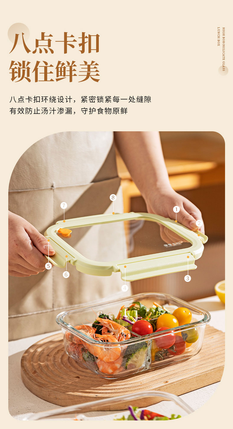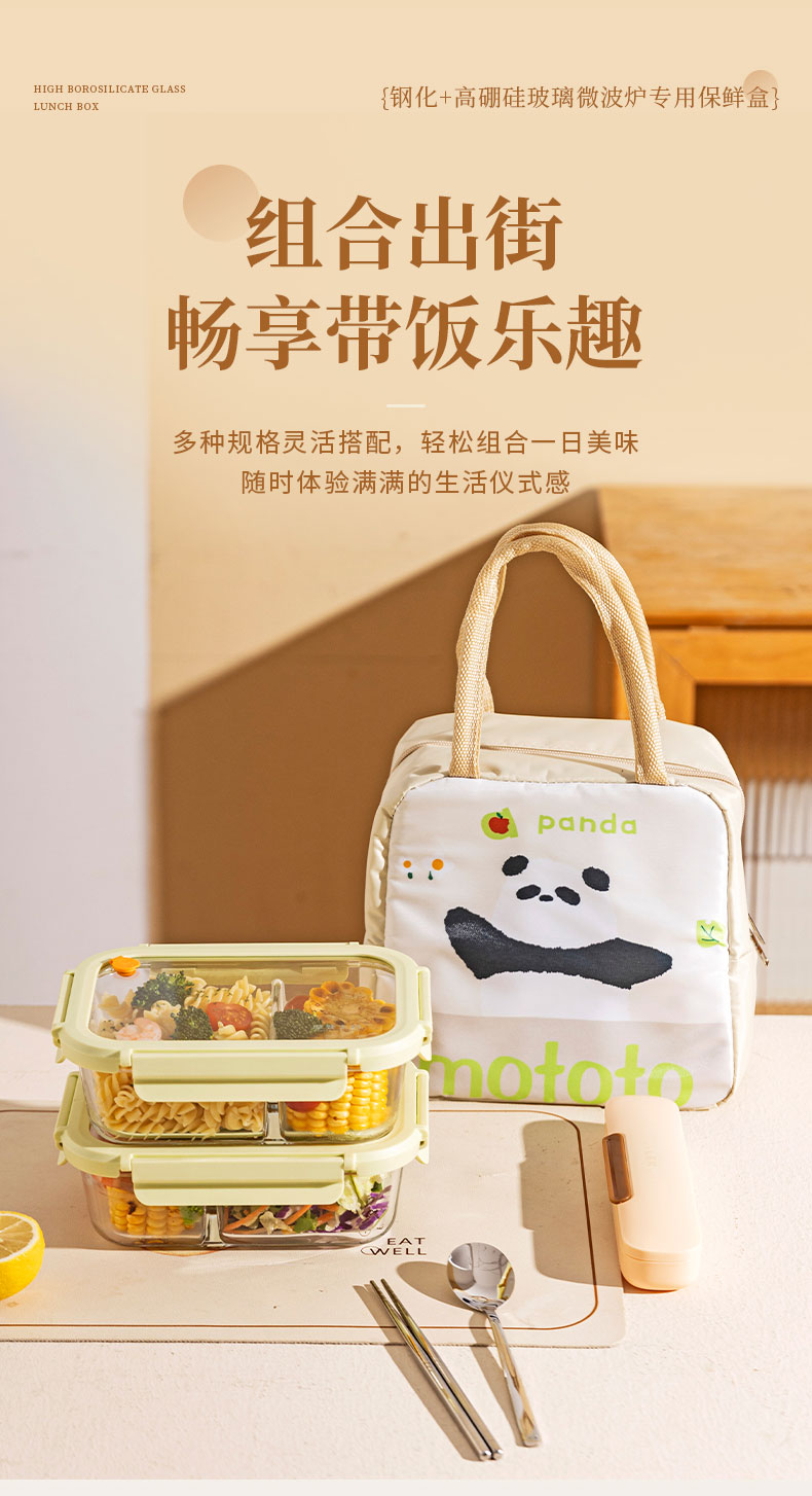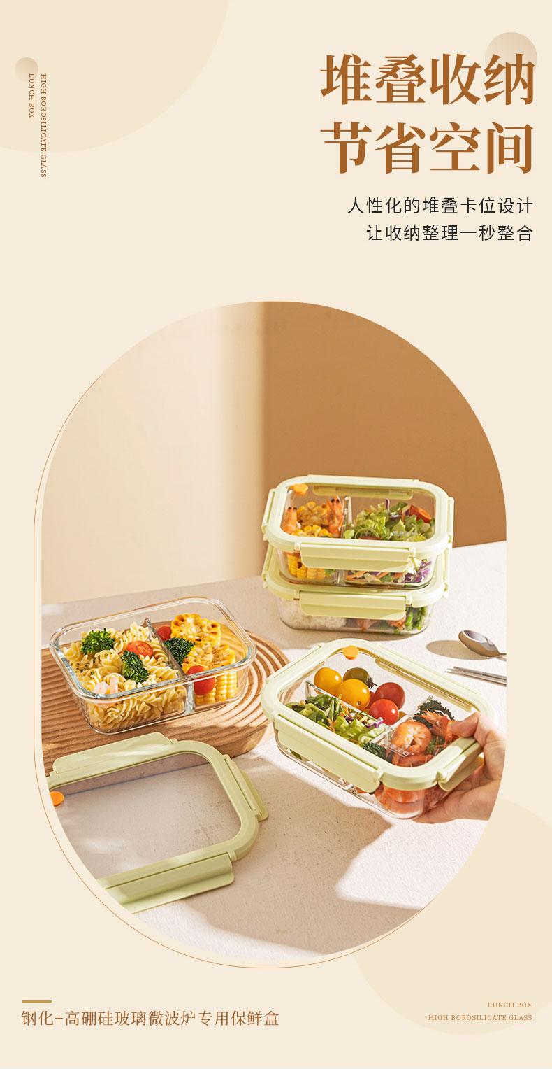 摩登主妇玻璃分格饭盒可微波炉加热上班族专用水果便当盒带饭餐盒
