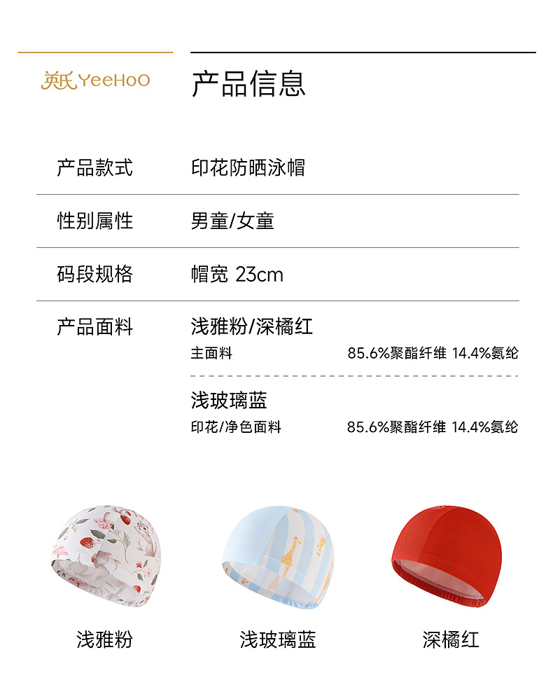 英氏儿童泳帽女童男童新款不勒头防晒游泳帽子夏季专业训练泳帽