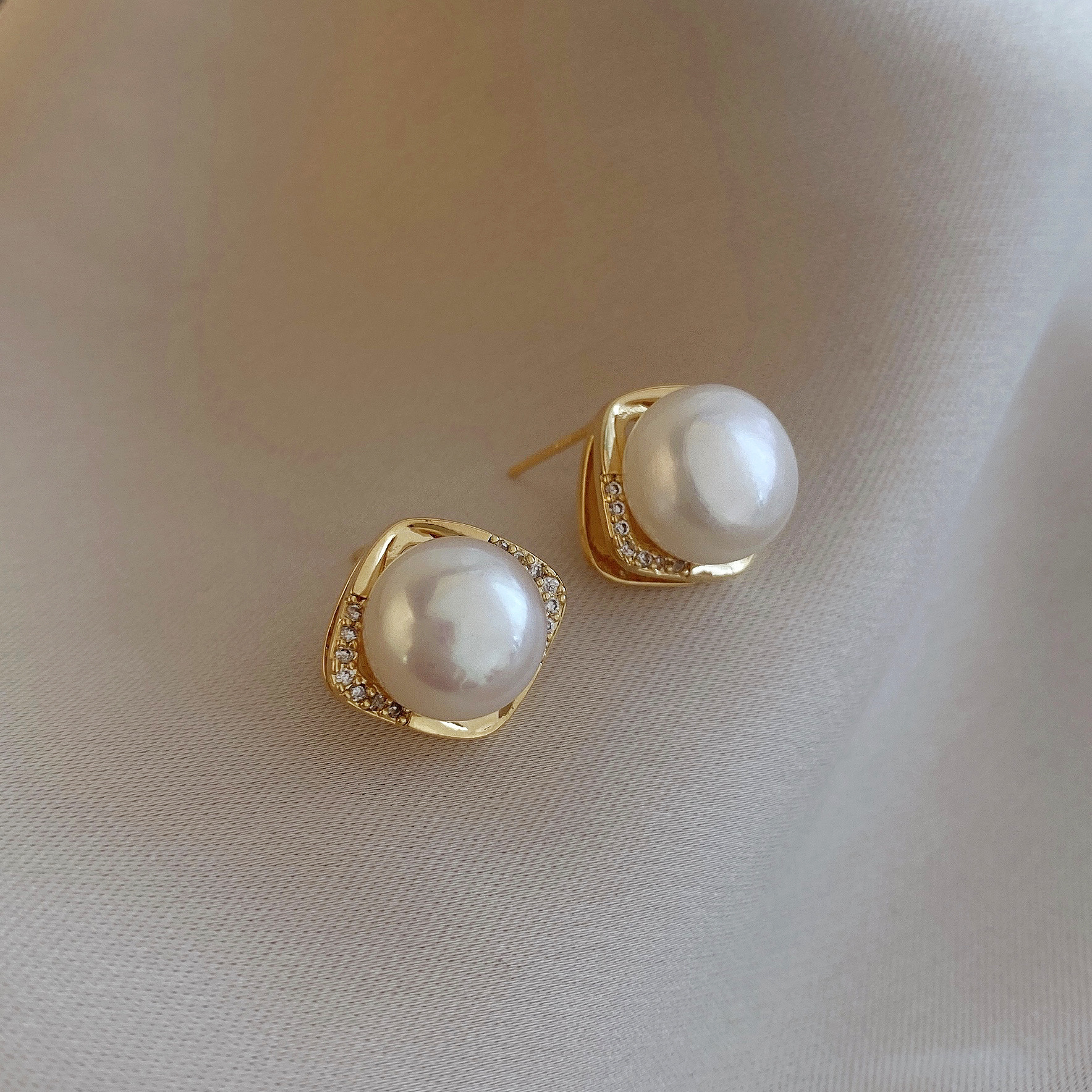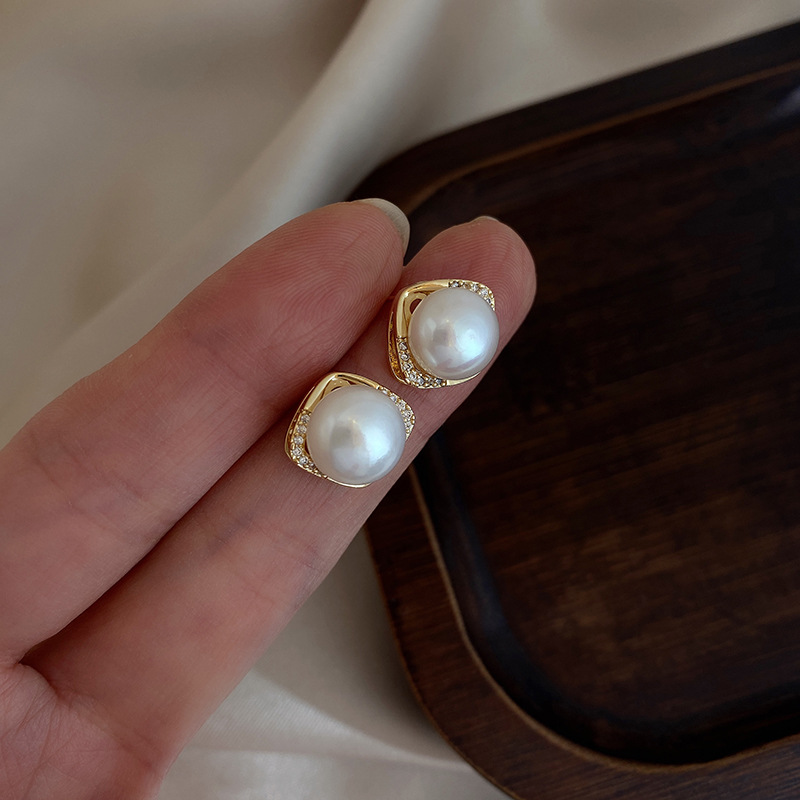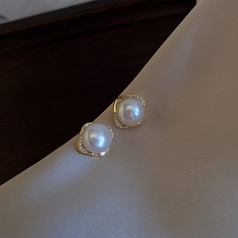 丁摩 倪妮同款天然淡水馒头真珍珠耳钉女气质耳饰无耳洞耳夹4ZF-EAR1255